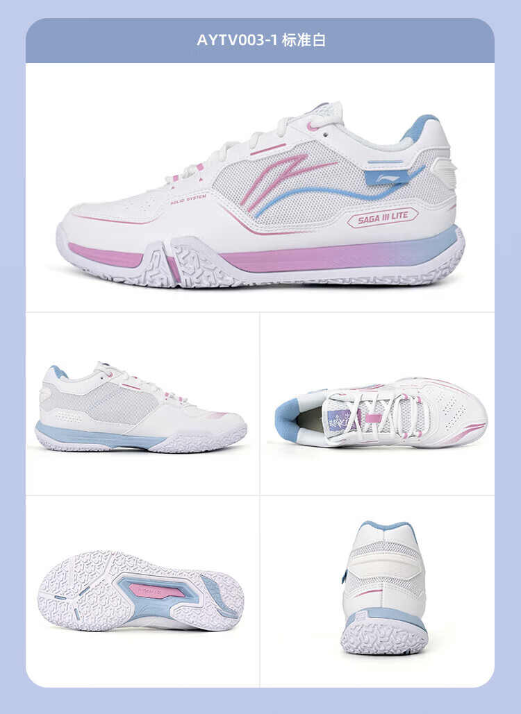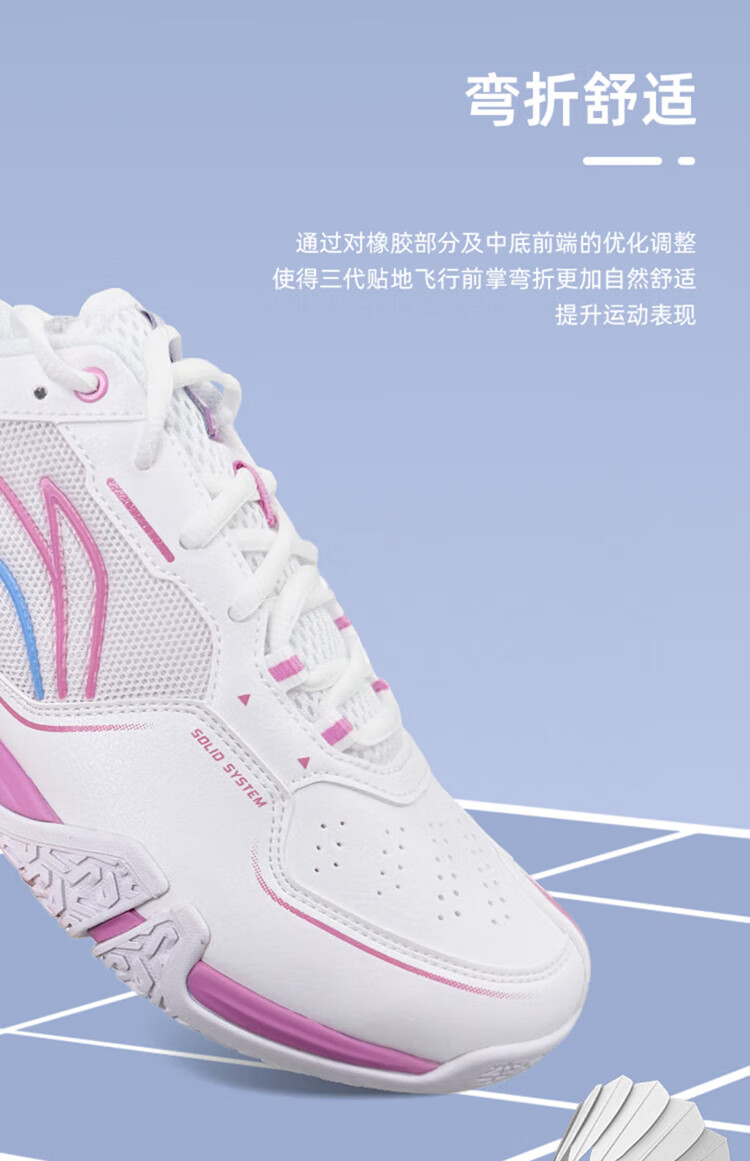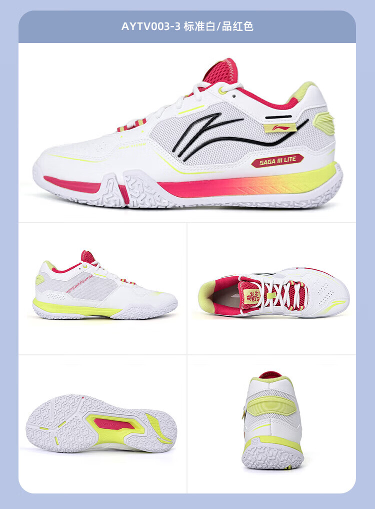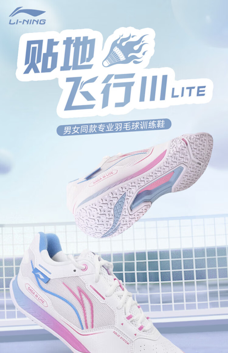 LI-NING 李宁 羽毛球鞋 贴地飞行Ⅲ LITE 男女同款 宽楦训练鞋 AYTV003-1 标准白 11.11同价抢先购超级秒杀,原价309元,现仅需279元!