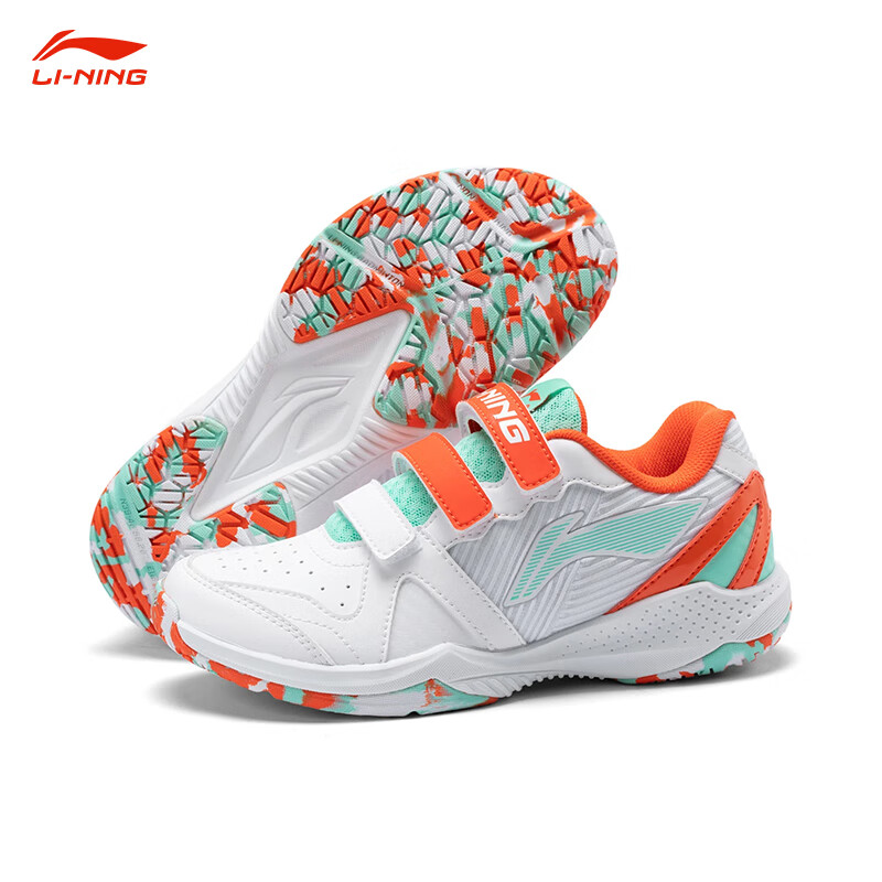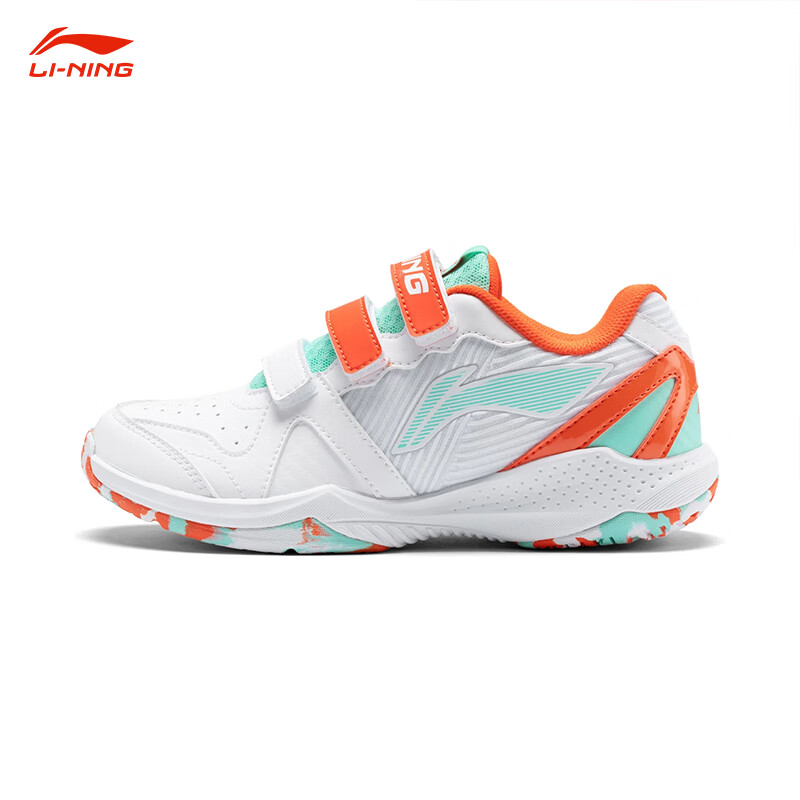 李宁 羽毛球鞋 AYTV012-2 雷霆JR 标准白/瓷青绿/活力橙: