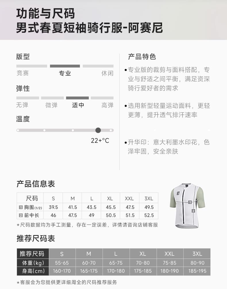 Santic森地客 骑行上衣 WM3C02224GS 灰色 防晒骑行服夏季男款自行车骑行单车上衣骑行衣 透气吸湿 四面高弹 无痕贴合