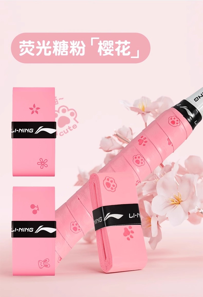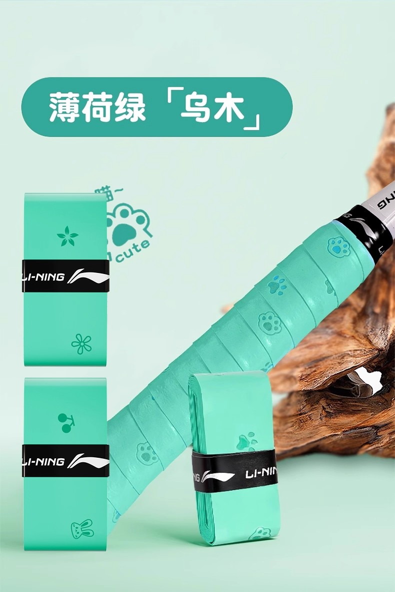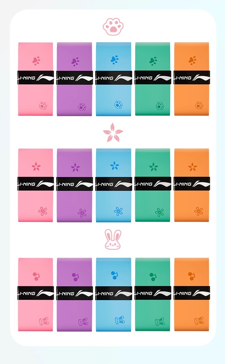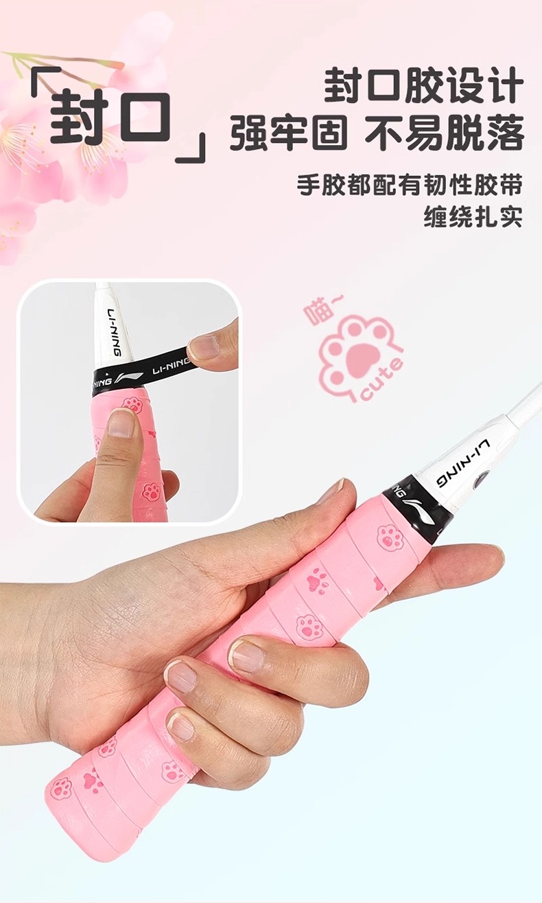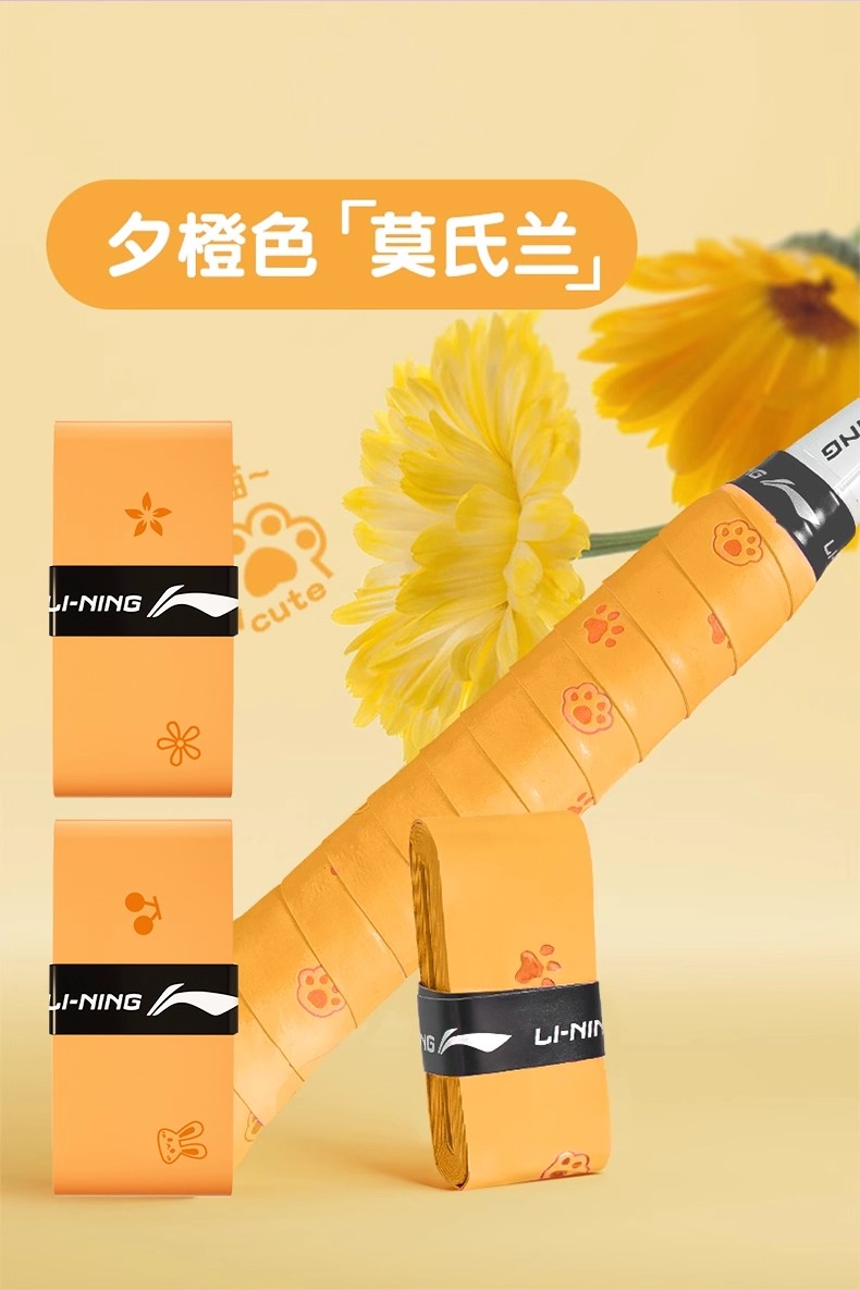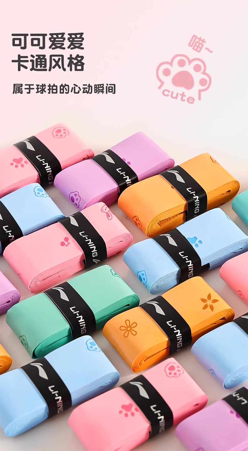 LI-NING 李宁 羽毛球手胶 粘性耐磨胶皮 吸汗带手柄绑带 植物香型 萌爪印花 ASJV003 GP2000 10条装 吸汗防滑 耐磨耐用