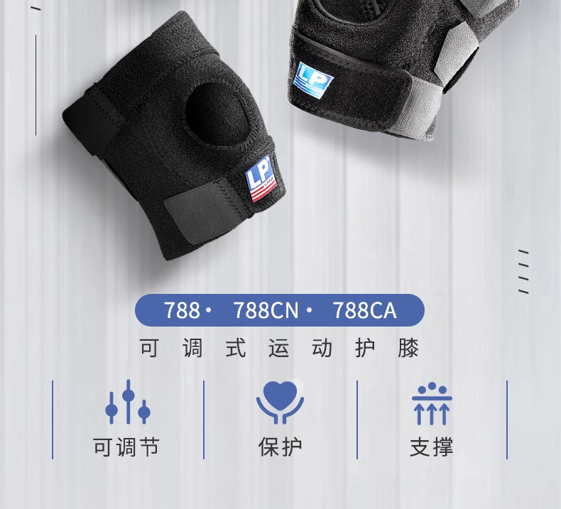 【套装】LP欧比调整型膝关节束带(调整型护膝)LP788 【两只装】 保护半月板 保护肌腱 双向可调节束缚带 稳定膝盖 EVA圆形软性垫片 包裹固定骸骨 缓解膝关节不适