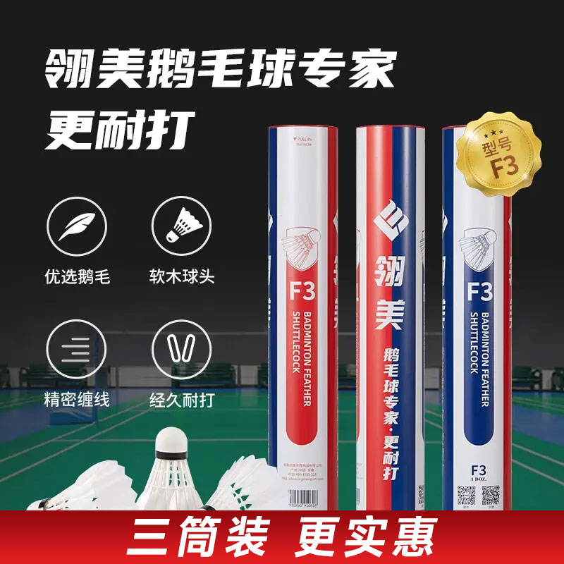 翎美 羽毛球 精选鹅毛球 F3 飞行稳定耐打出色 大赛用球比赛训练球 12只/筒 性能类似AS-30 经久耐打鹅毛球