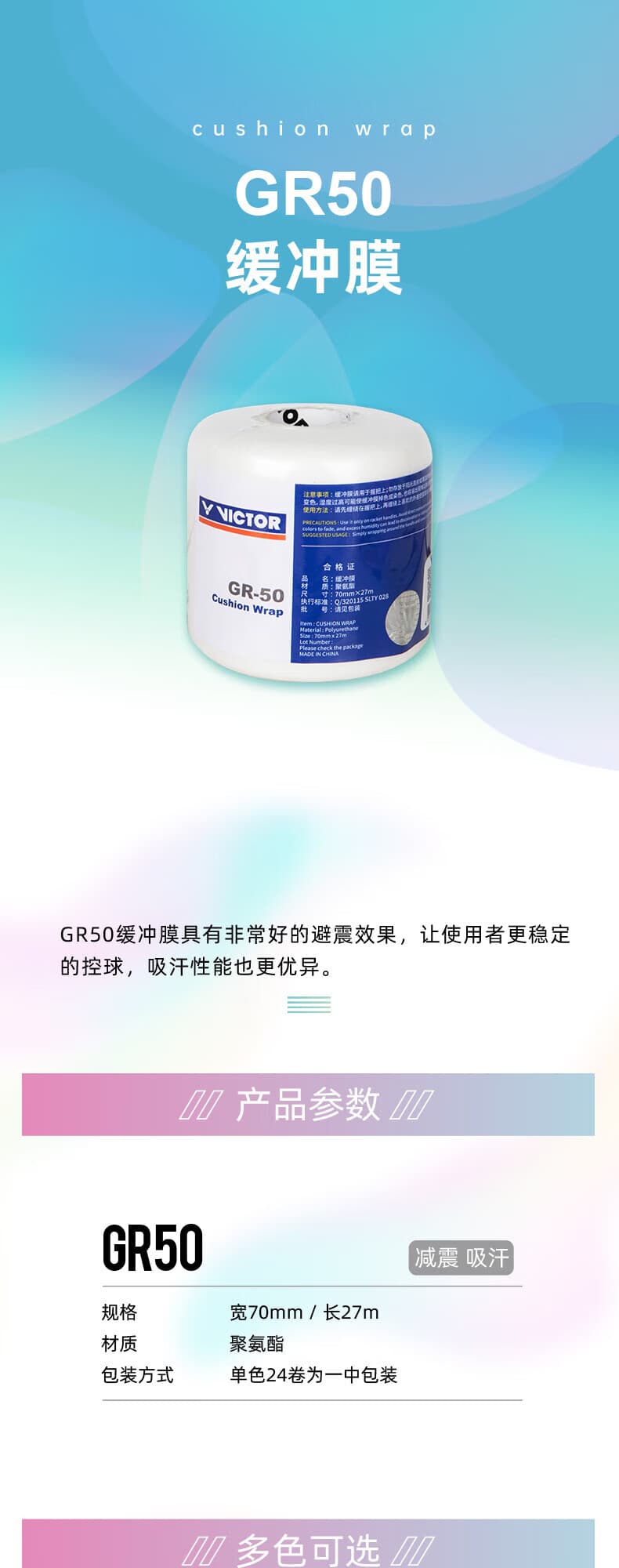 VICTOR胜利GR50缓冲膜(打造最一流的击球手感) 产品特色: