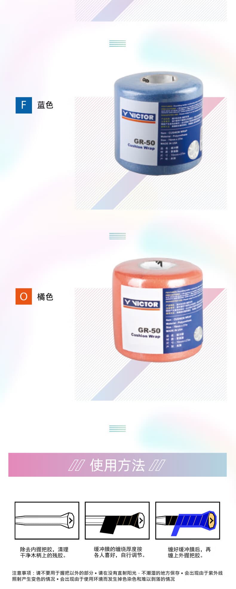 VICTOR胜利GR50缓冲膜(打造最一流的击球手感)使用方法:
