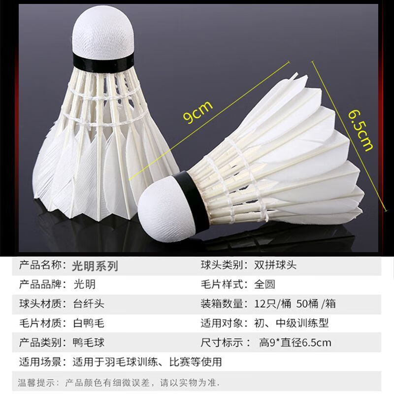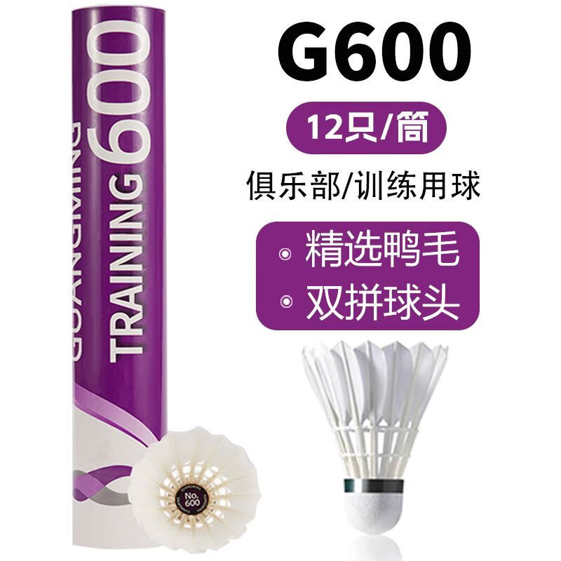 光明 羽毛球 光明600 室内室外训练用球 鸭毛全圆 G600 12只/筒 性价比高 俱乐部训练用球