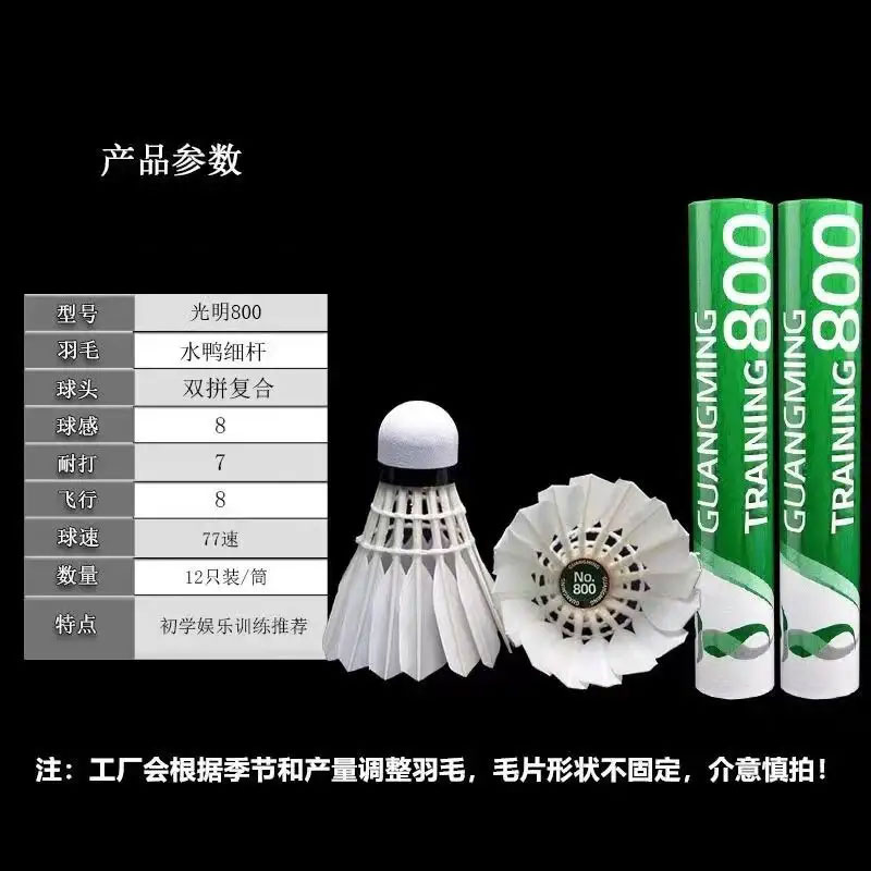 光明800 羽毛球 水鸭细杆 耐打比赛训练用球 12只/筒 初学娱乐训练推荐