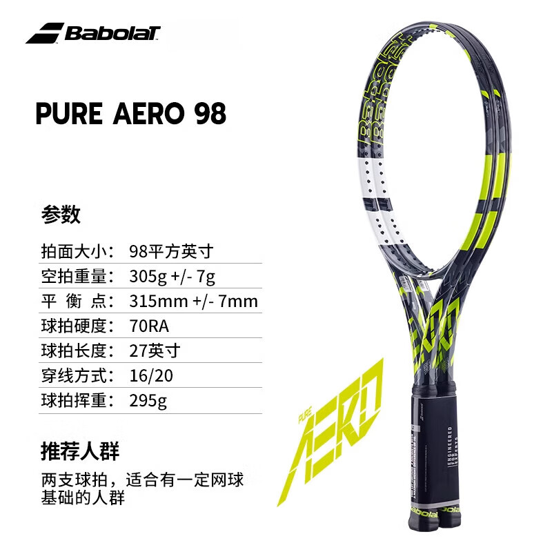 百宝力Babolat网球拍 纳达尔PA系列 阿尔卡拉斯夺冠拍 101480 100/300 黑黄