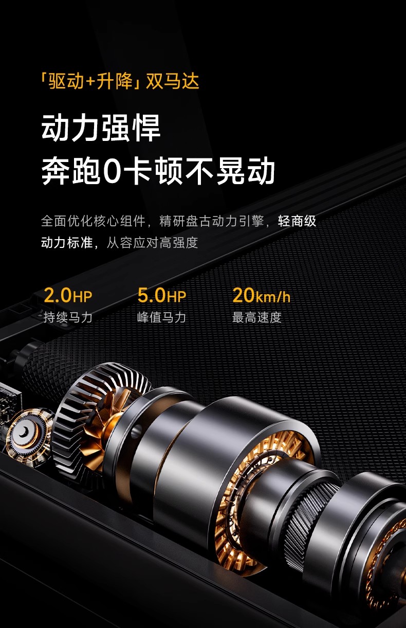 动力上,5.0HP 轻商无刷双电机 澎湃有力,搭配升级 12° 大坡度 + 25 挡调节,慢走、爬坡燃脂等多种运动强度随心切换;