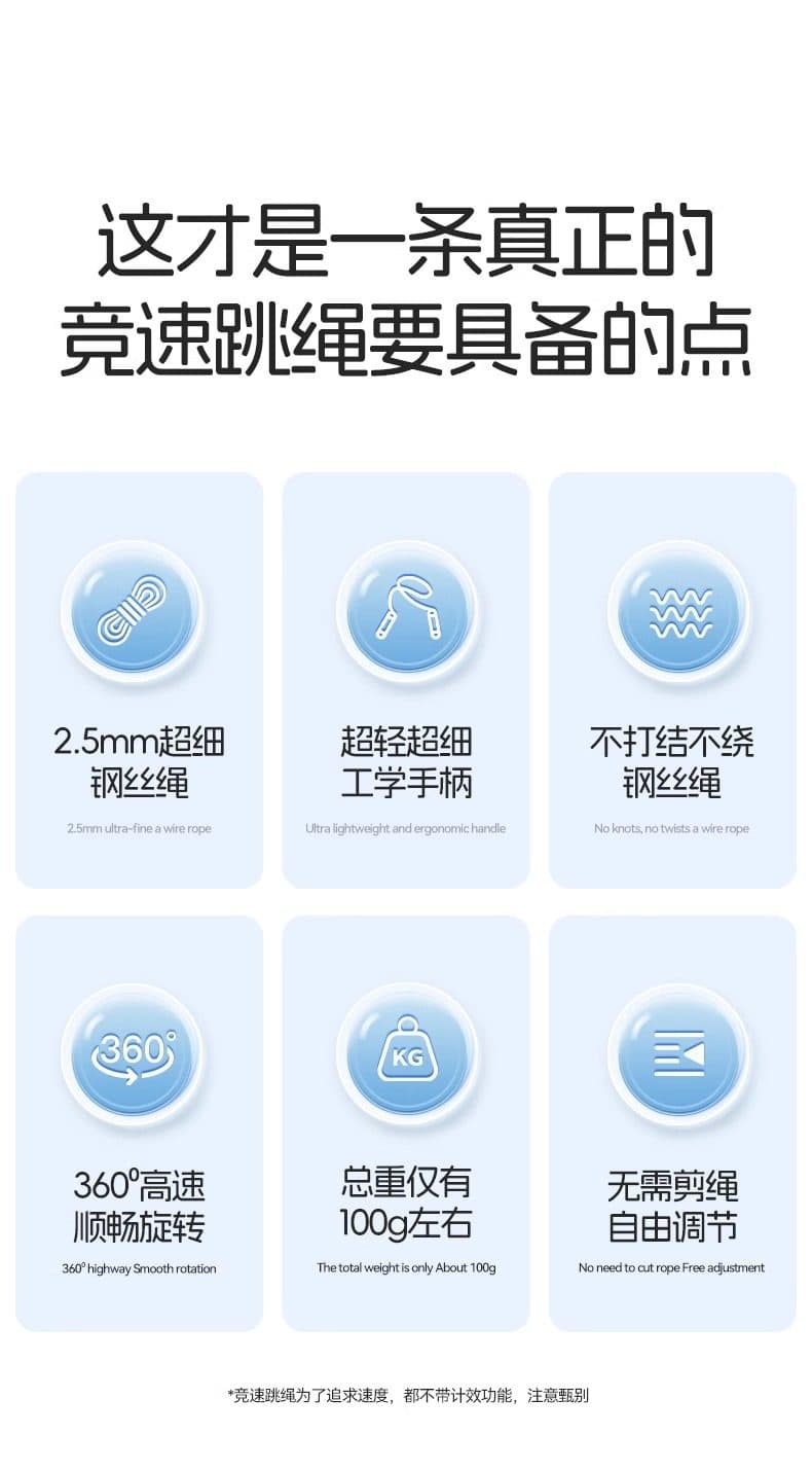 XTEP特步 竞速跳绳 钢丝跳绳 中考专用学生竞速跳绳 AHA768 多色可选