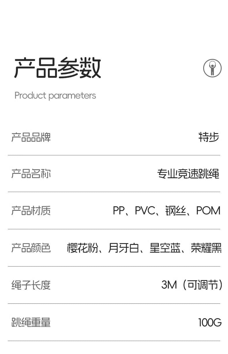特步 AHA768 钢丝跳绳是中考专用竞速神器