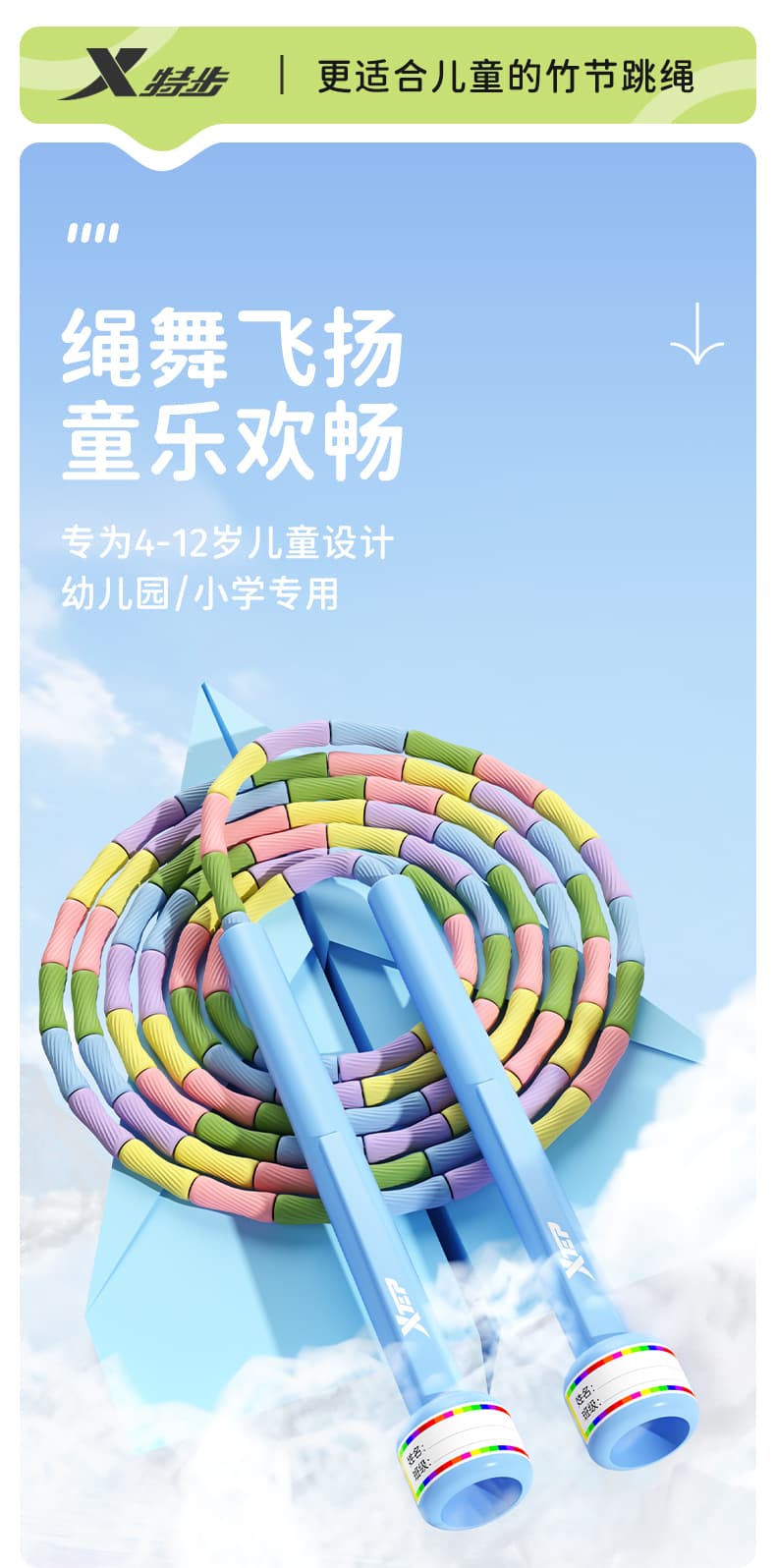 特步 AHA305 儿童竹节跳绳专为小学生及初学者设计