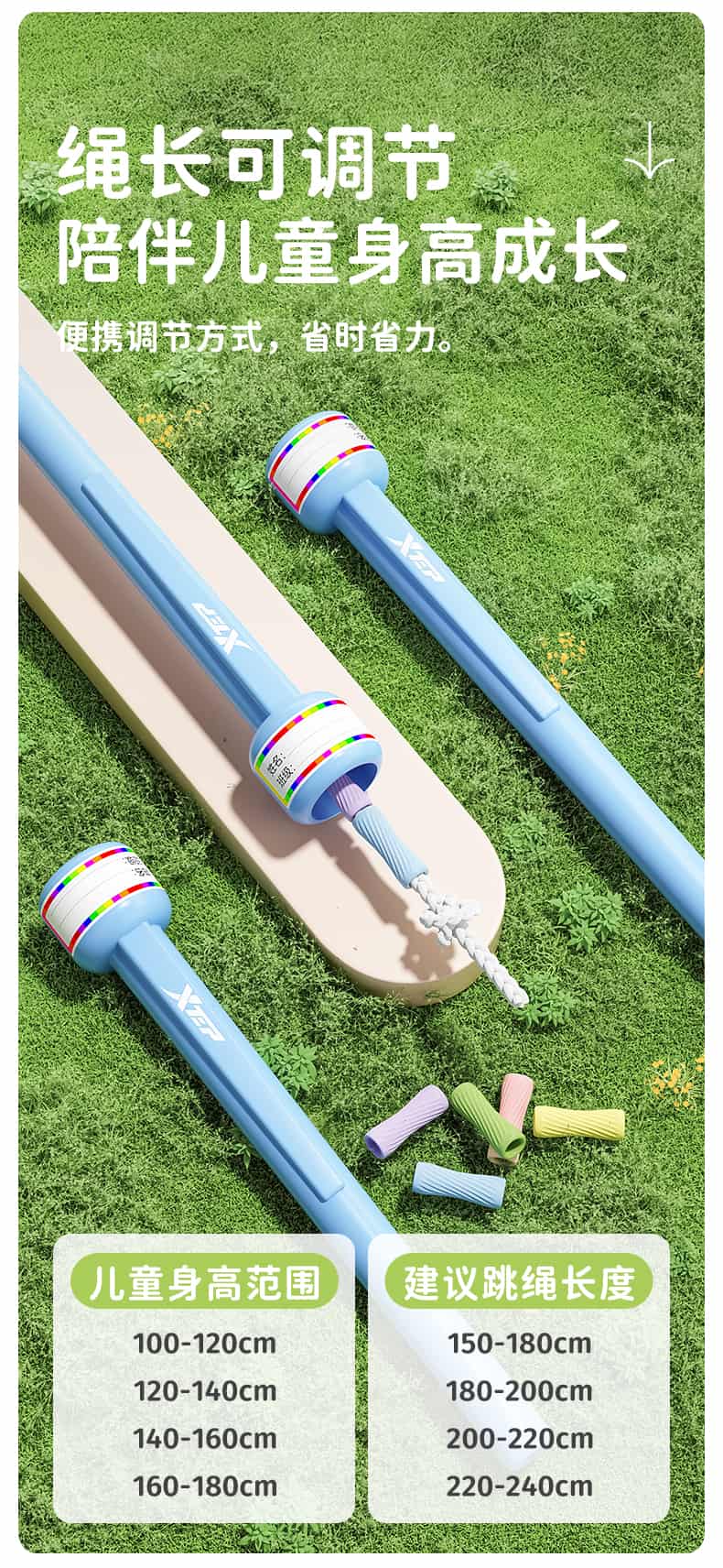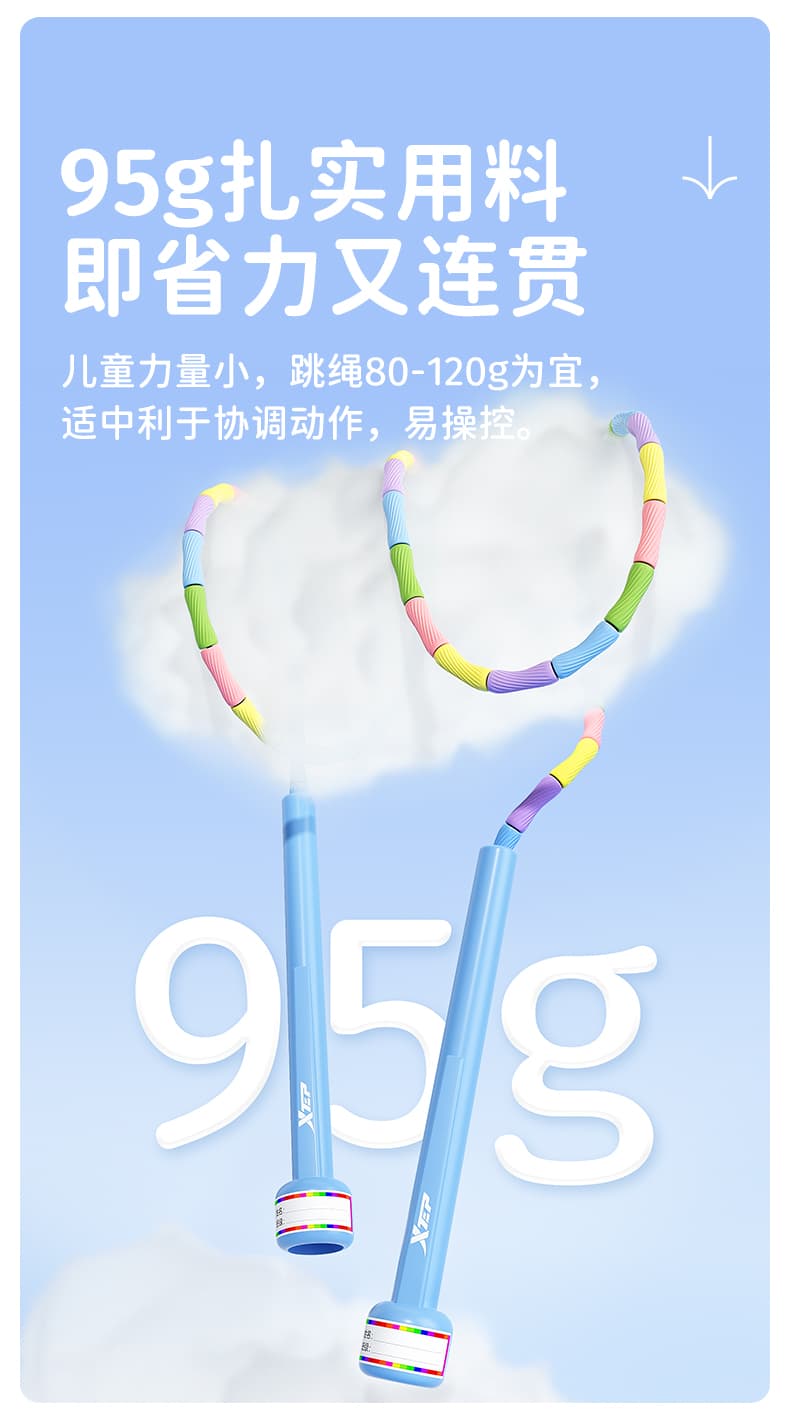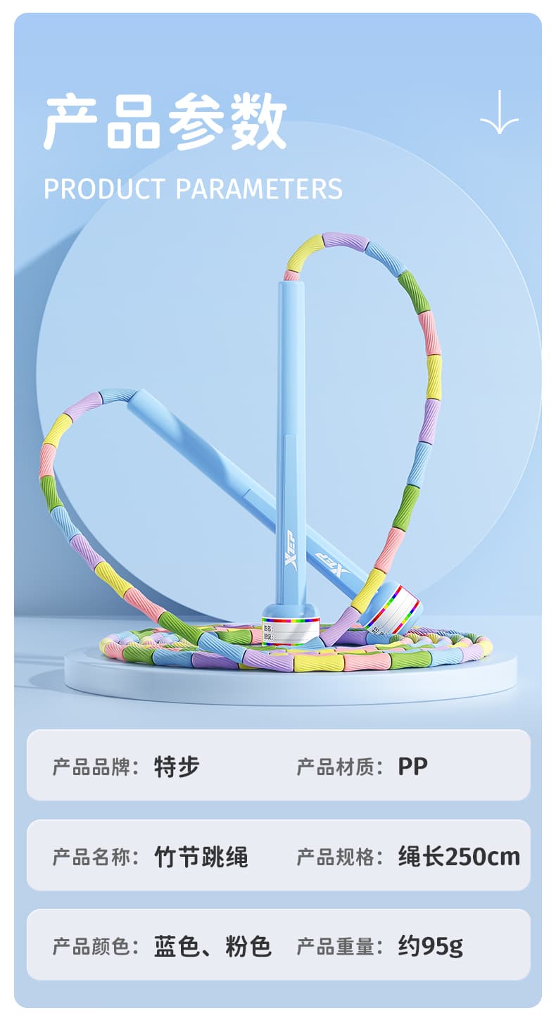 XTEP特步 儿童竹节跳绳 学生专用绳子不打结 AHA305 双色可选