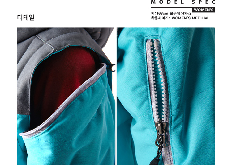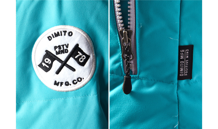 DIMITO COBBLE JACKET 女款单板滑雪服 天蓝色 细节图之拉链和魔术贴