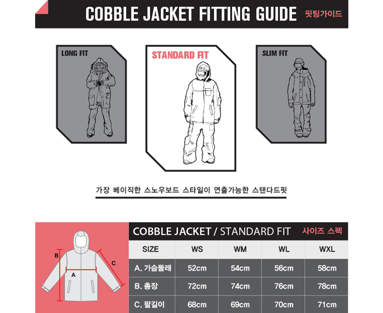 DIMITO COBBLE JACKET 女款单板滑雪服 天蓝色 尺码表