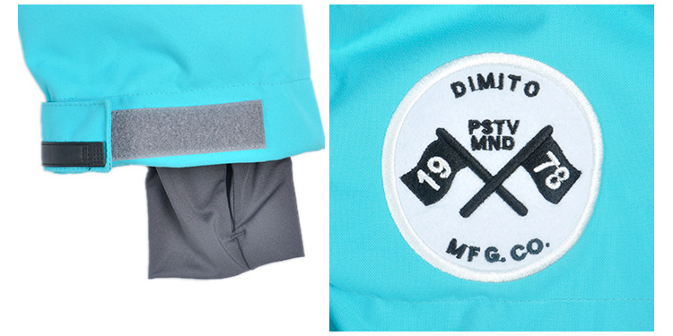 DIMITO COBBLE JACKET 女款单板滑雪服 天蓝色 细节图之袖子和袖标