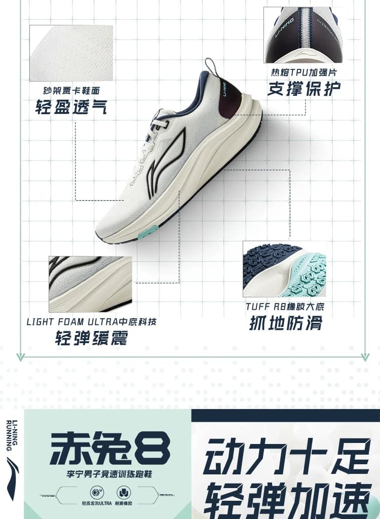 LINING李宁 男 赤兔8跑步鞋 2025新款网面透气运动鞋 减震学生跑鞋 ARPV001-11 乳白色