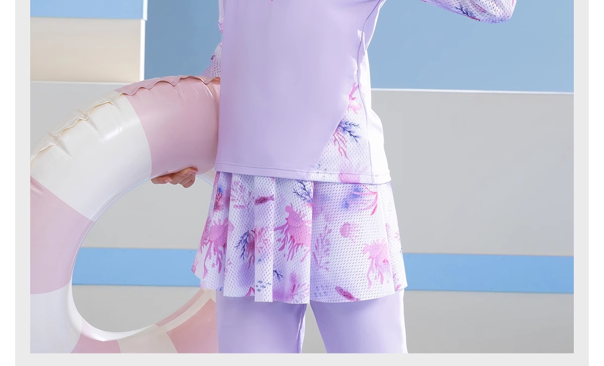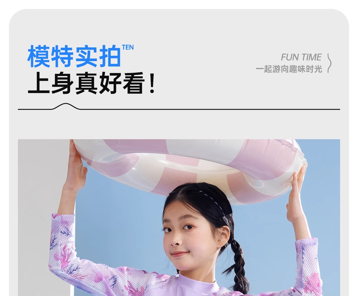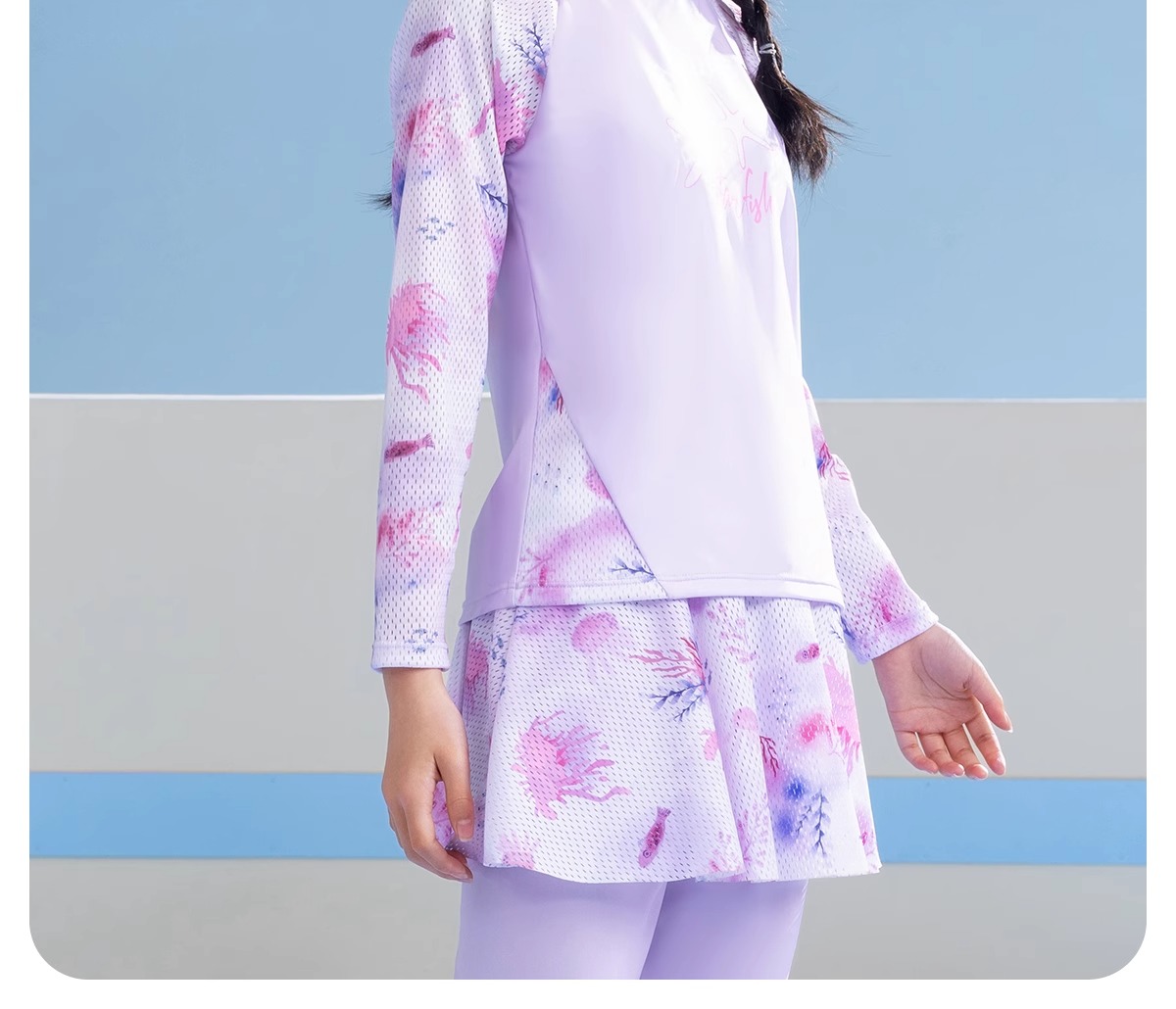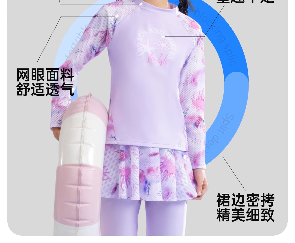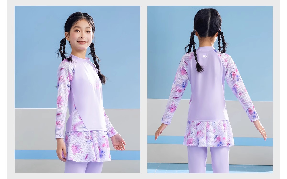 361度 儿童泳衣 女童长袖长裤分体泳装 中大童初中生防晒女童泳衣 SLY25Y5240 梦幻紫 舒适圆领,不勒脖子,网眼面料,舒适透气
