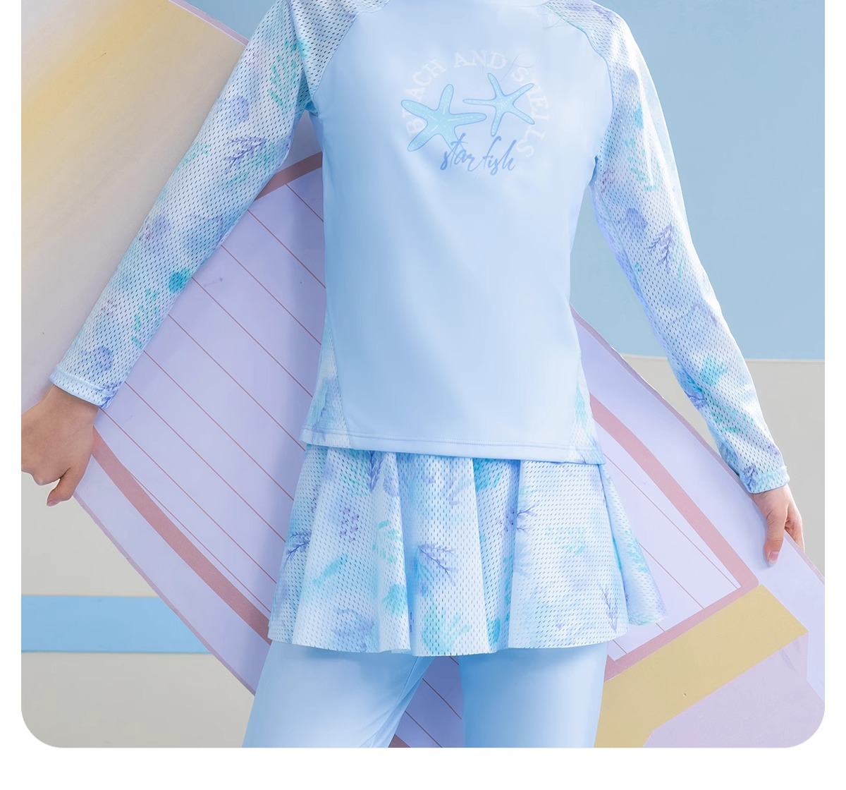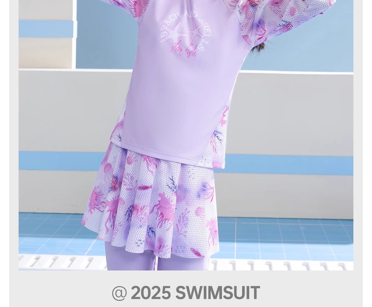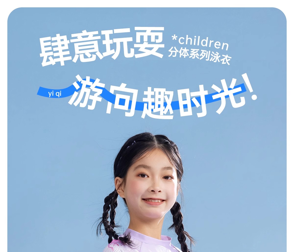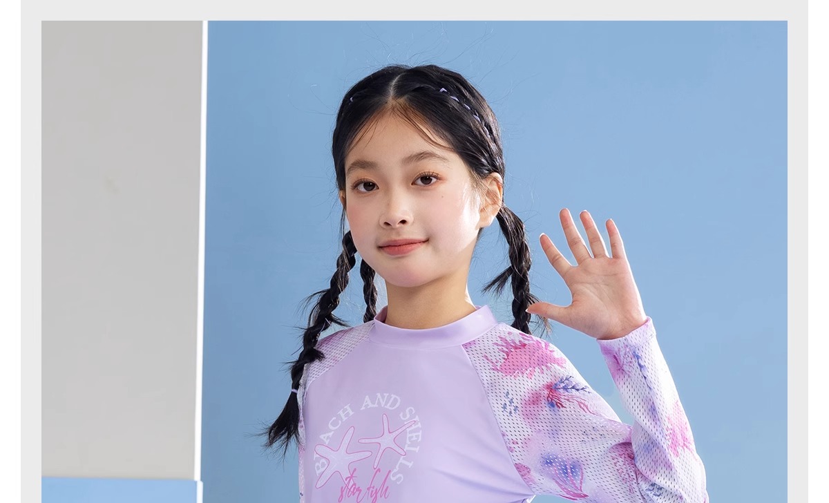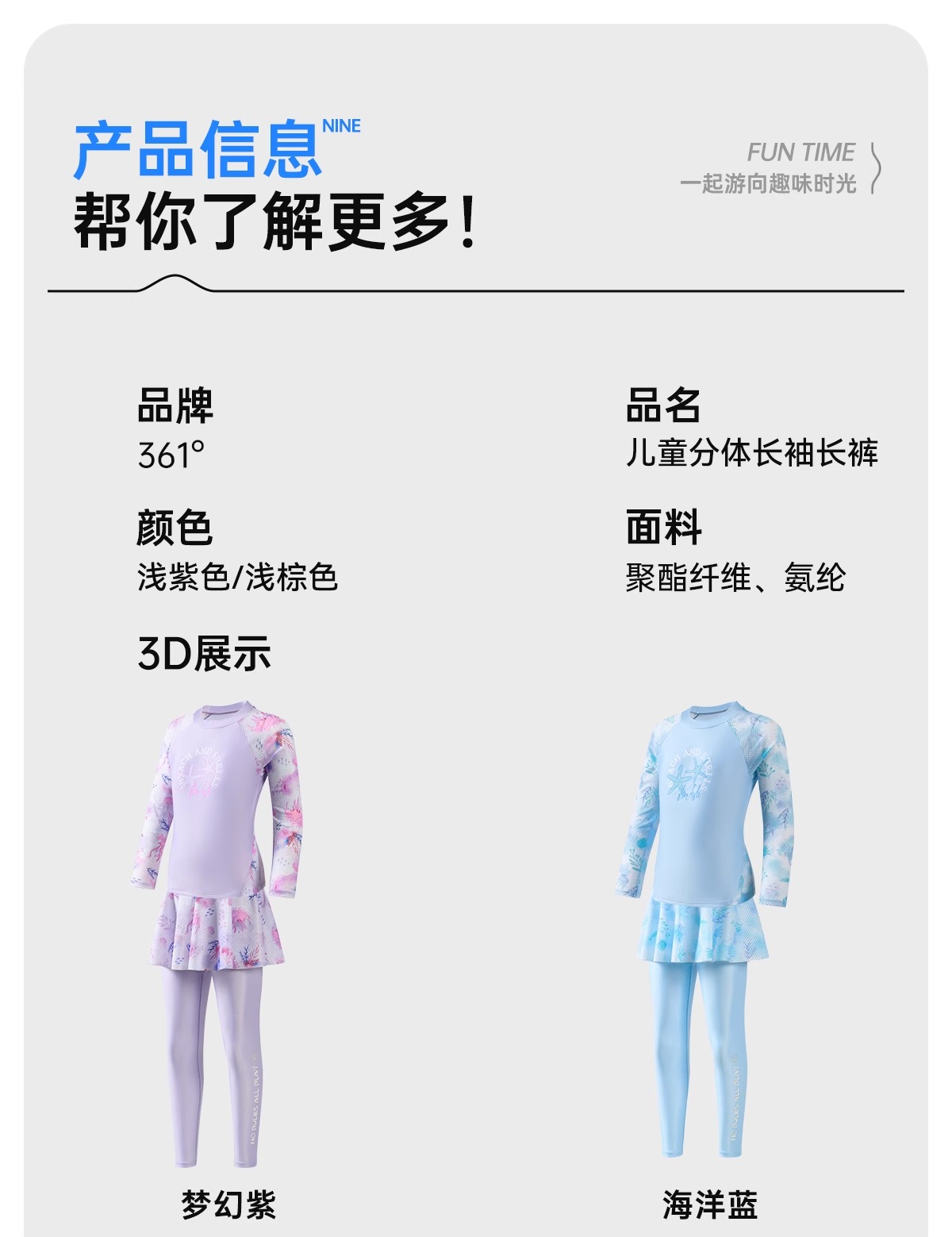 361度 儿童泳衣 女童长袖长裤分体泳装 中大童初中生防晒女童泳衣 SLY25Y5240 梦幻紫 舒适圆领,不勒脖子,网眼面料,舒适透气