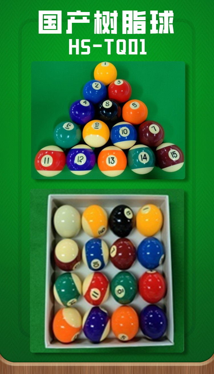 国产优质树脂精工打造,美式十六彩、斯诺克多场景适配.