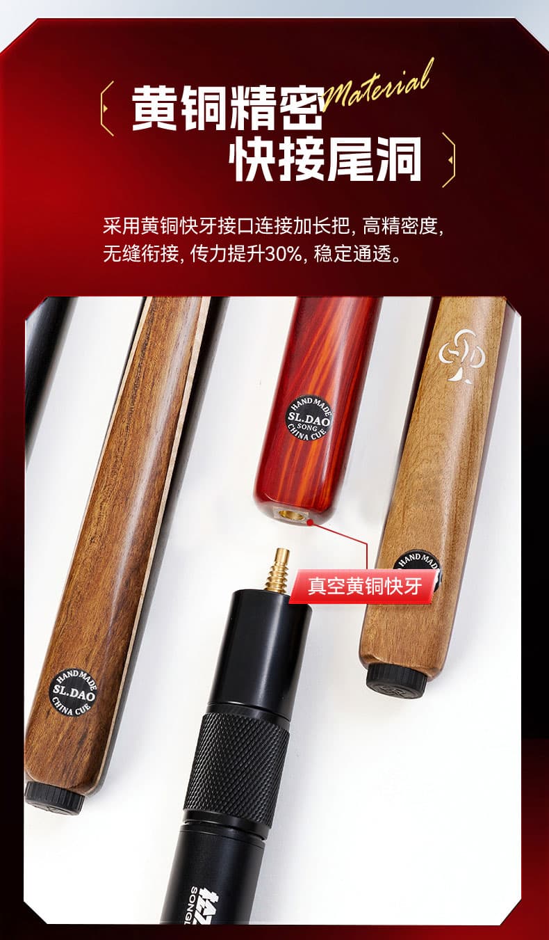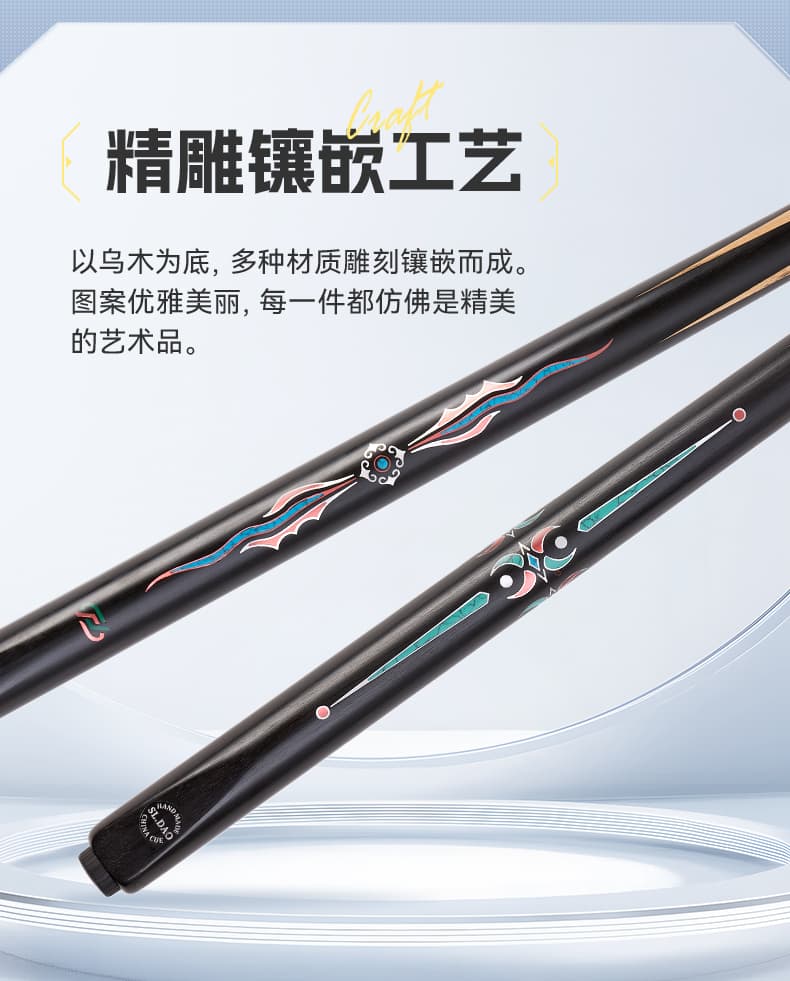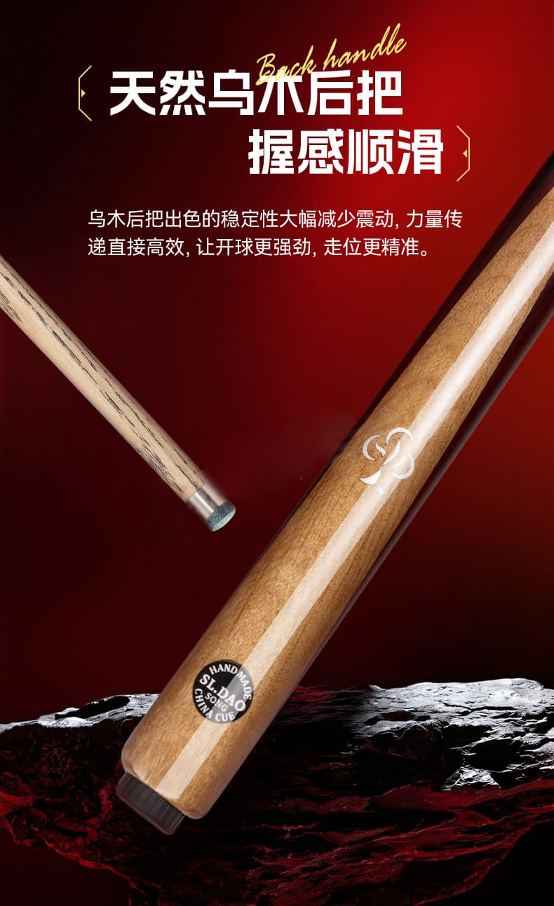 松力道-动灵 芯片防伪手工实木一体小头杆中式黑八九球桌球杆台球杆【高配皮木杆盒套装】