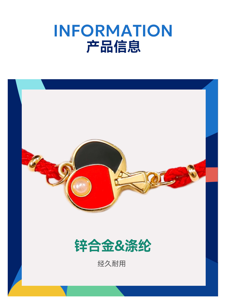 深圳兵乓球亚洲杯 球拍款手绳 纪念手绳 乒乓球迷周边纪念用品 时尚百搭纪念礼物 红色