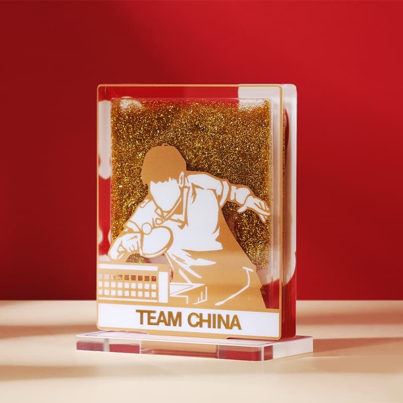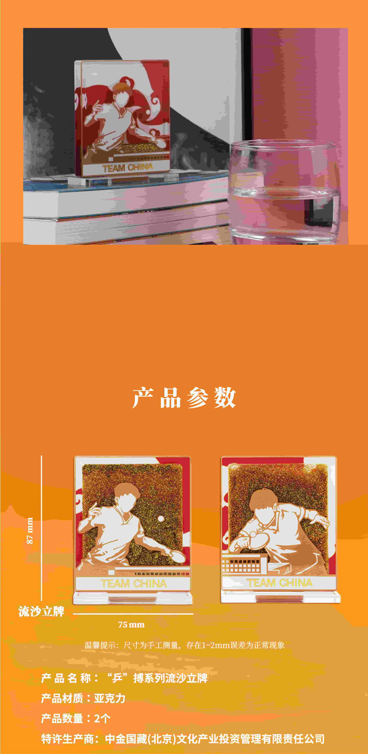 TEAM CHINA 中国国家队 “乒”搏系列流沙立牌 复古版画风格,星耀乒坛,搏出精彩