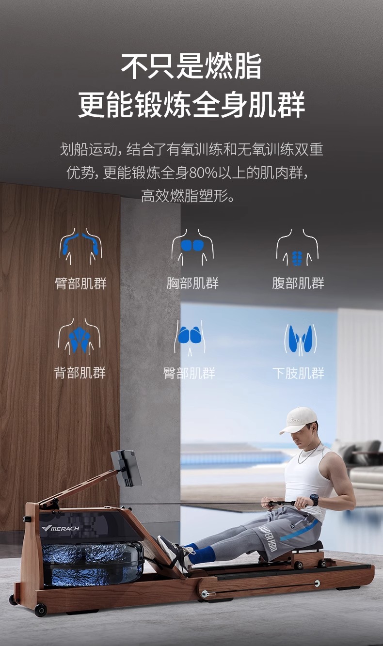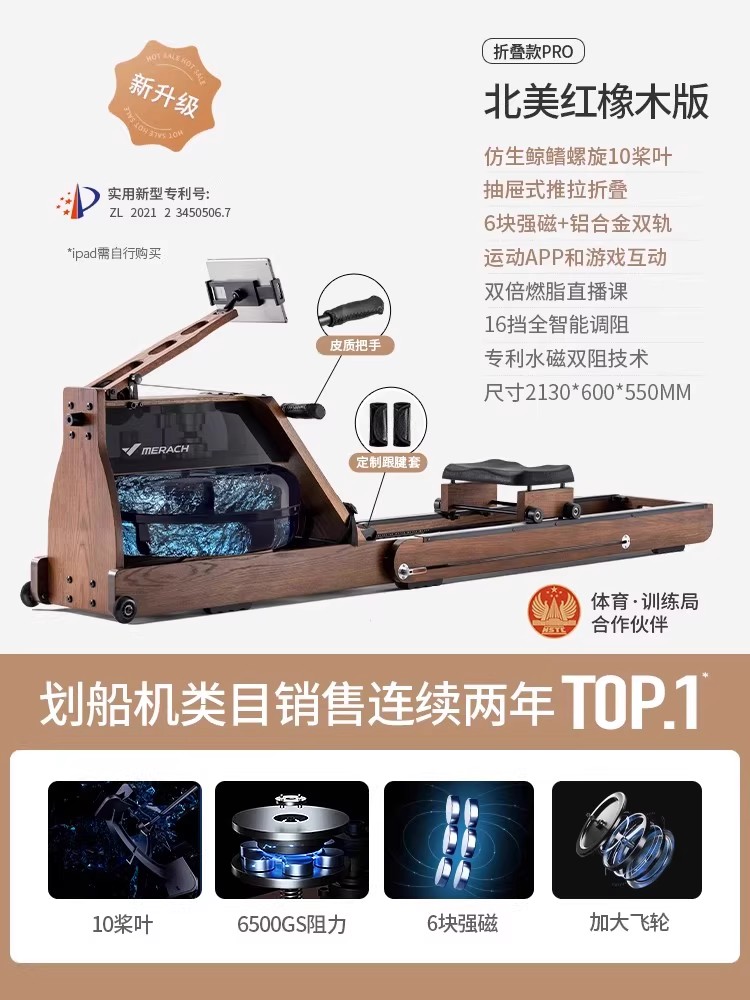麦瑞克MERACH IR-950系列水磁双模划船机-升级10桨叶版 红橡木折叠版【插电版】