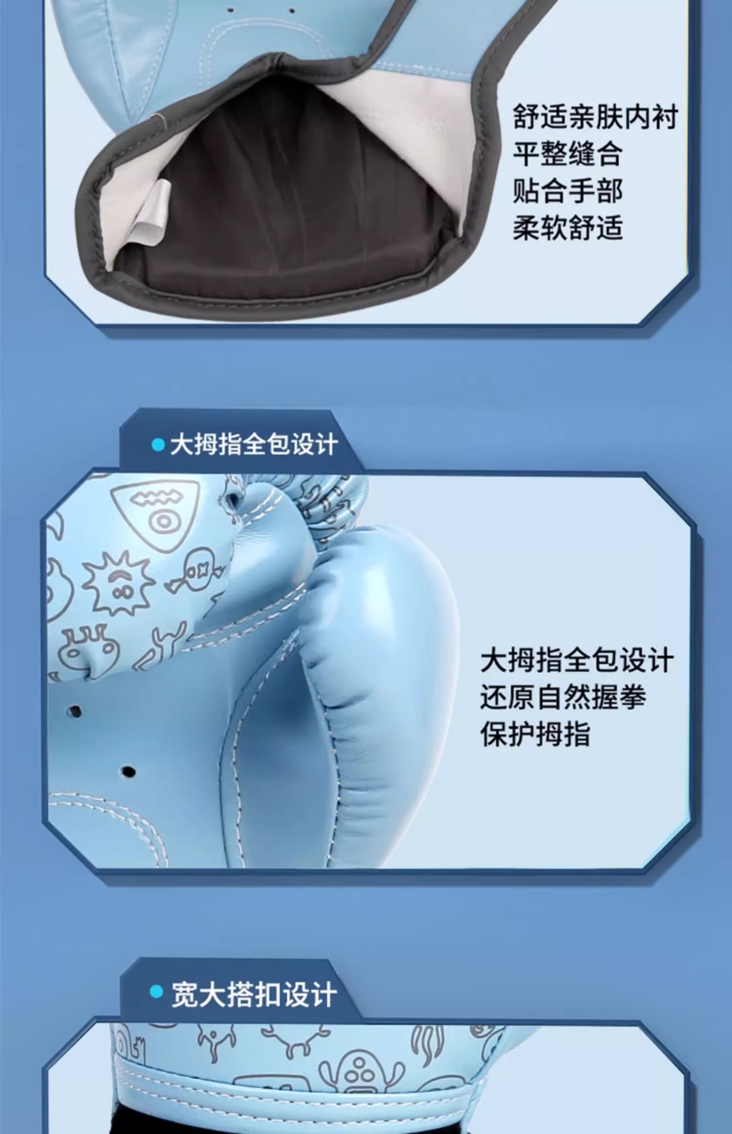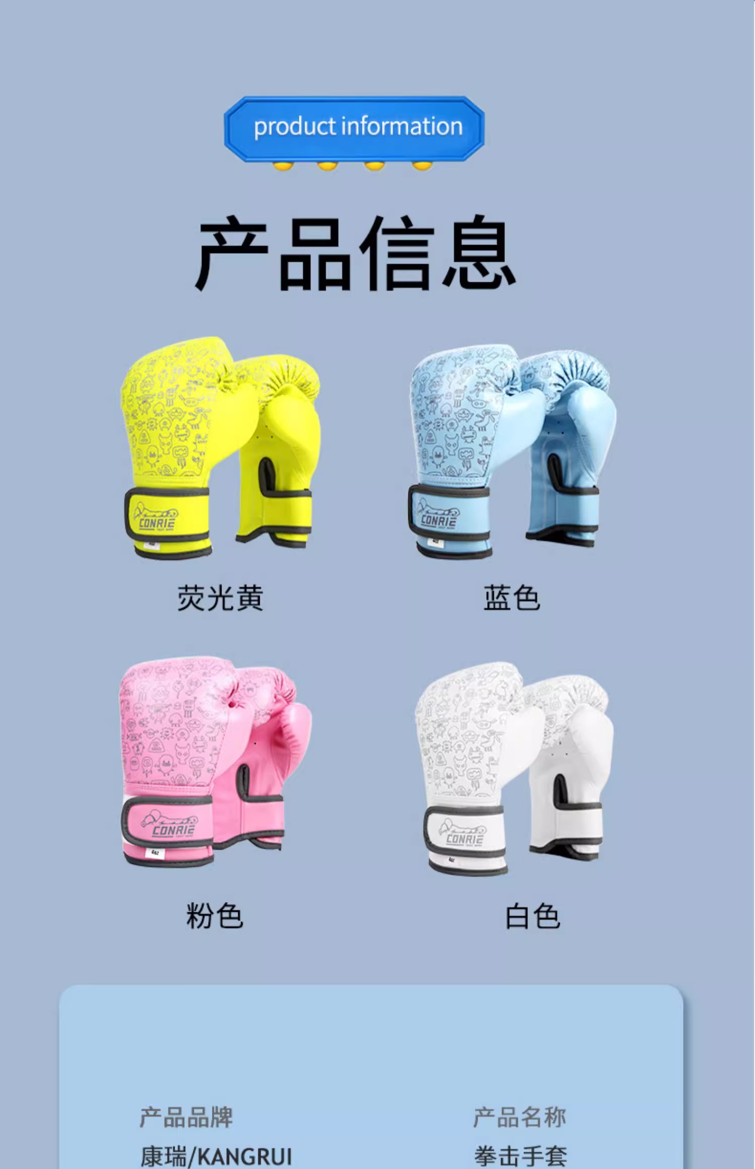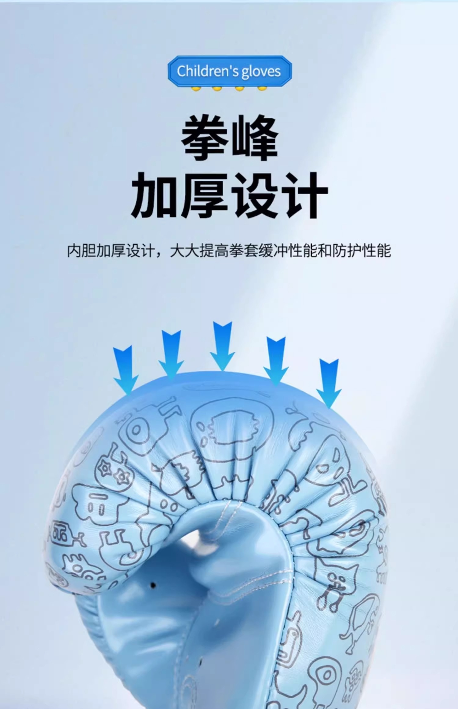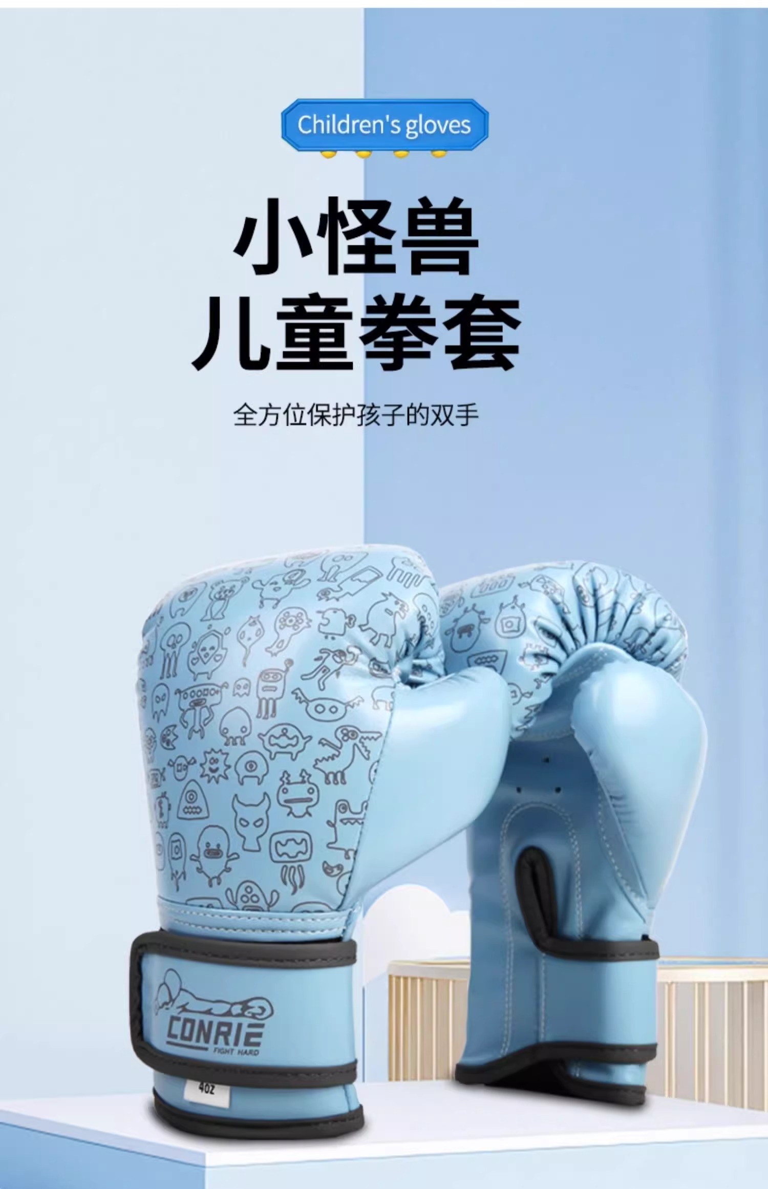 康瑞 小怪兽儿童拳套 KB347 儿童涂鸦款拳击手套 专业训练散打4oz卡通拳套 训练男孩子搏击发泄 复合内胆设计 加强手腕支撑 拳峰加厚设计