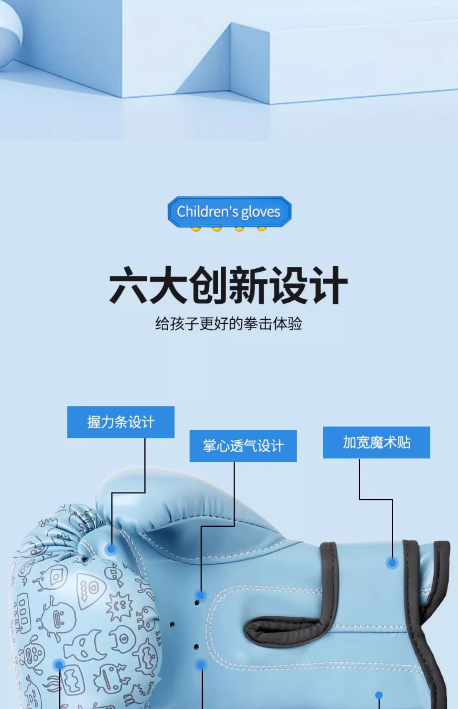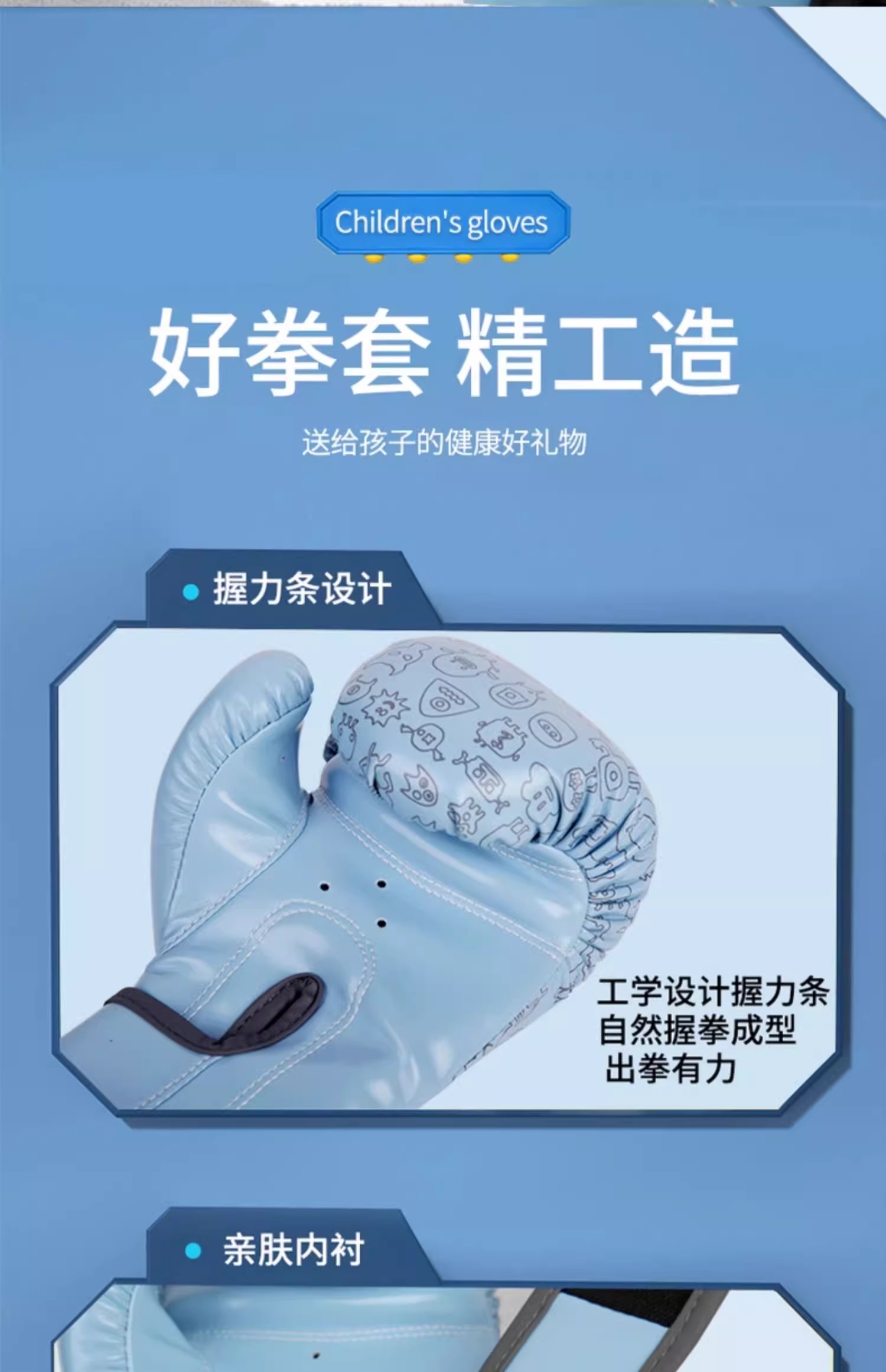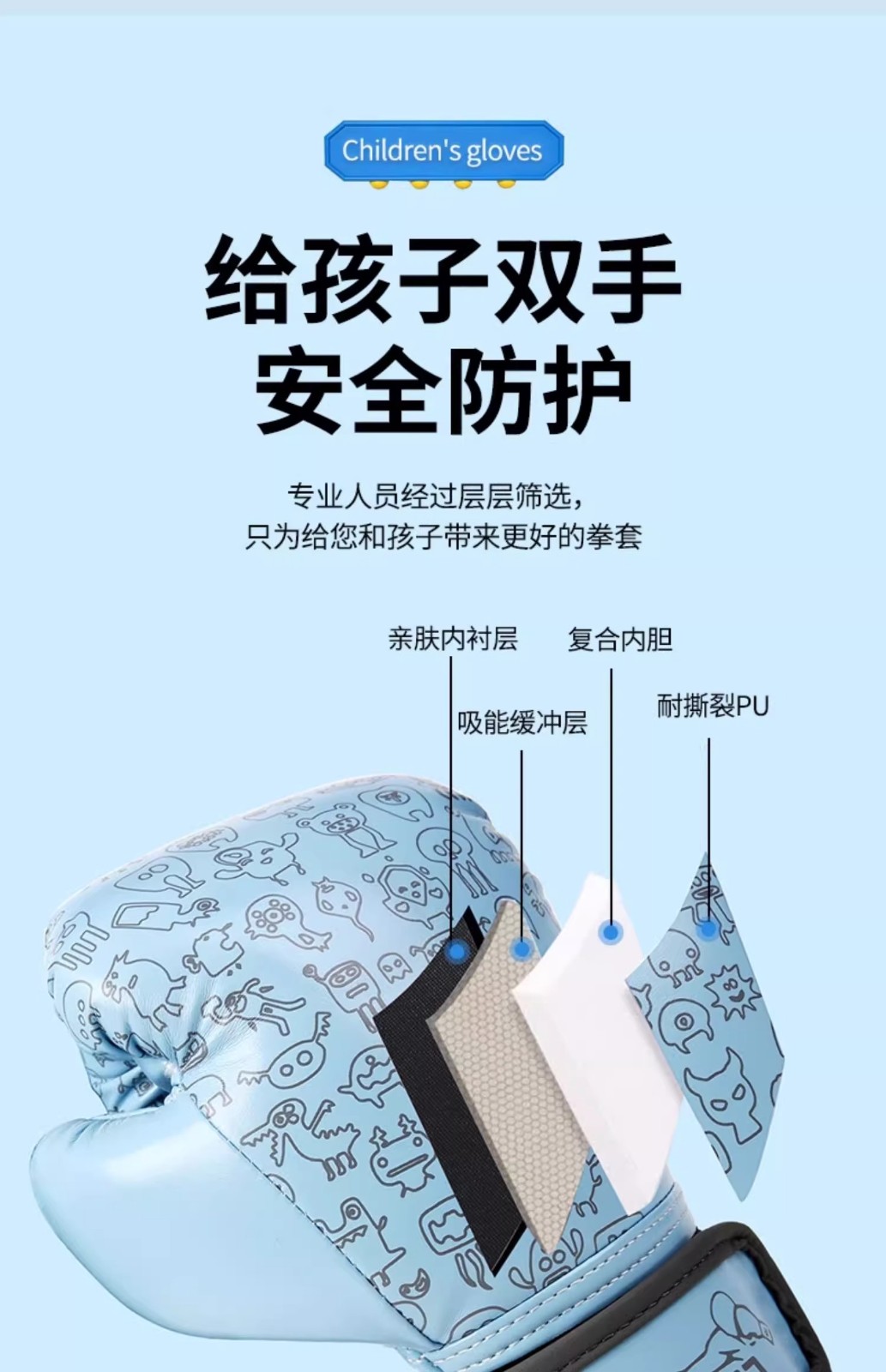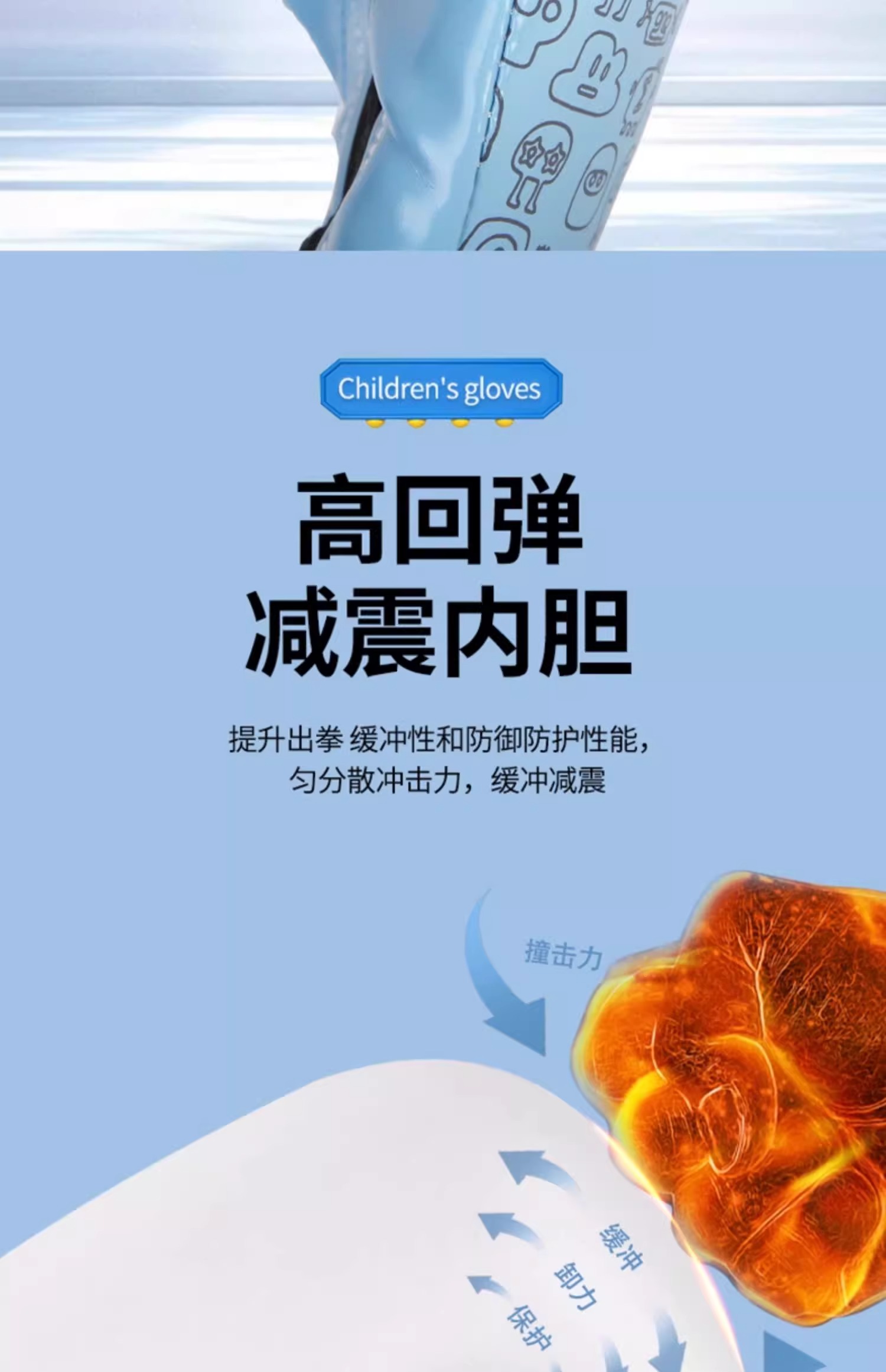 康瑞 小怪兽儿童拳套 KB347 儿童涂鸦款拳击手套 专业训练散打4oz卡通拳套 训练男孩子搏击发泄 复合内胆设计 加强手腕支撑 拳峰加厚设计