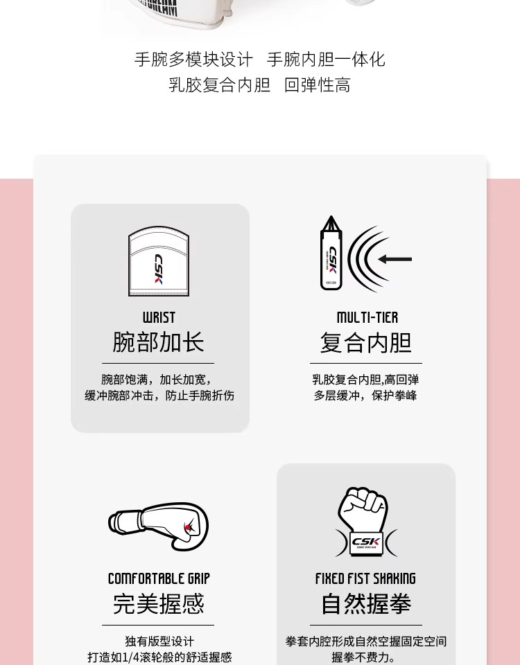 CSK中成王 领航者2.0拳套 D1012(10oz) 透气吸汗女生拳套 泰拳搏击格斗训练专业比赛
