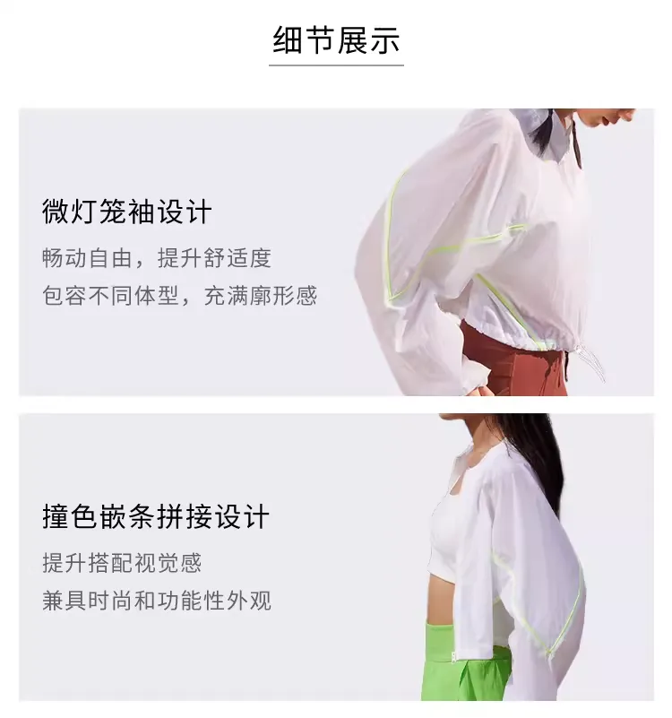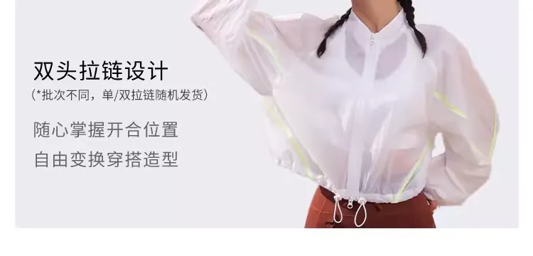 粒子狂热 女士轻薄开衫外套 PSS304654-NB-130 白色 防晒外套 春夏女UPF50+凉感轻薄 户外夹克防晒服 双头拉链设计 撞色嵌条拼接 凉感透气