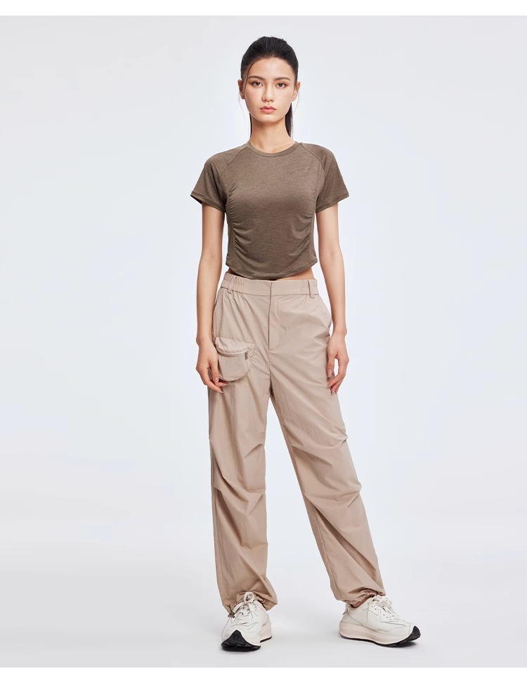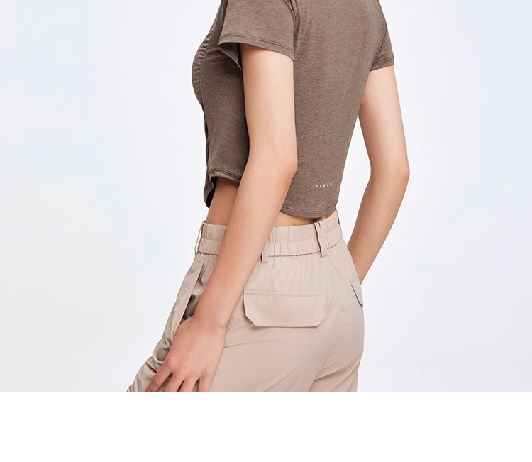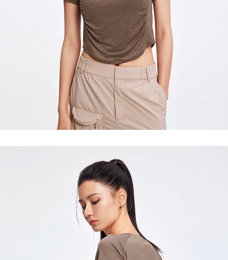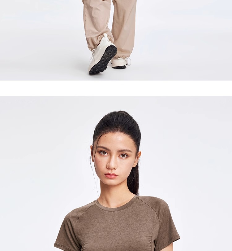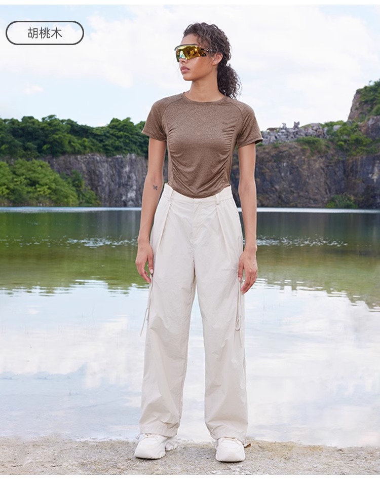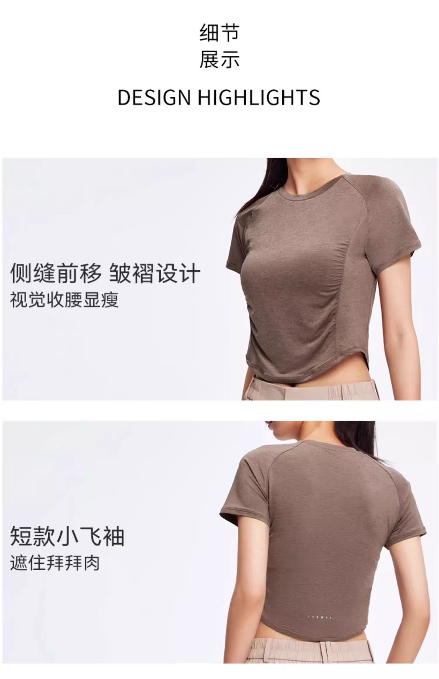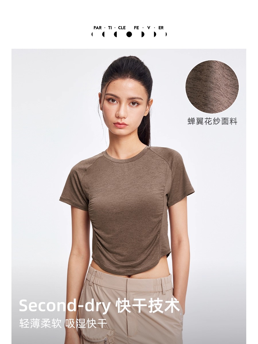 粒子狂热 女士瑜伽短袖 PSA301625-817 胡桃木 速干运动短袖 春夏女高腰显瘦休闲瑜伽健身T恤 经典圆领 弧形下摆 修身剪裁