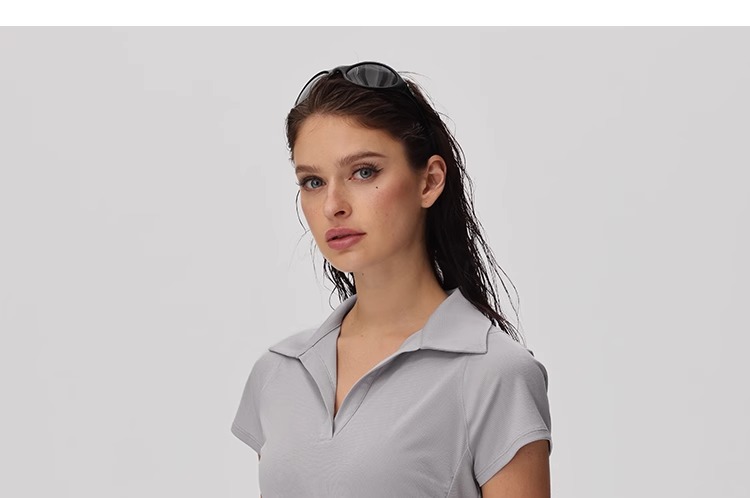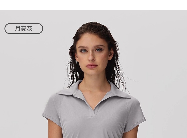 粒子狂热 女士polo短袖T恤 TP050-QS-128 月亮灰 运动短袖春夏女 速干凉感修身休闲健身POLO衫 吸湿速干 凉感舒适 修身版型