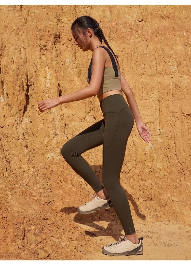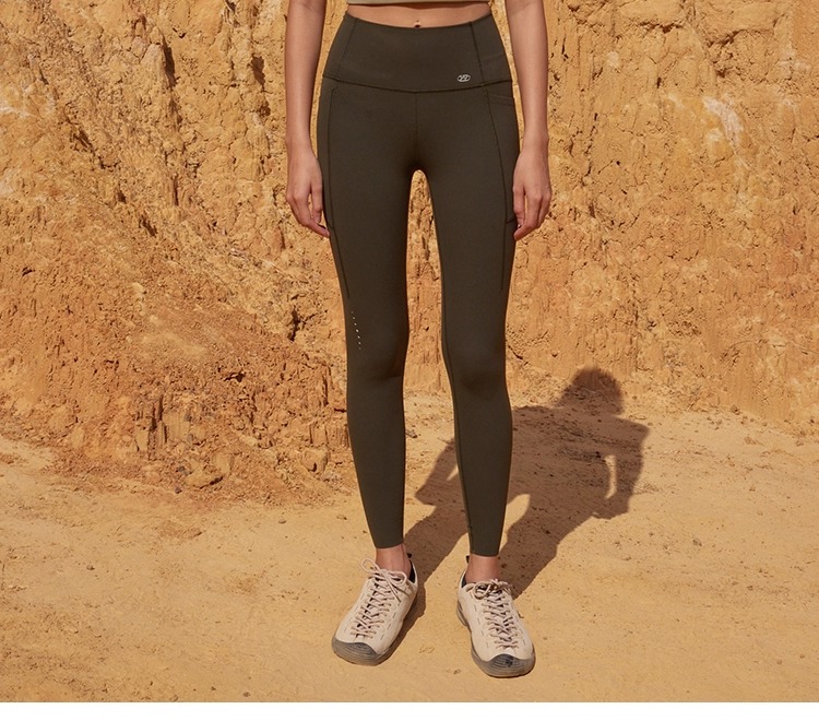 粒子狂热 反光logo口袋紧身裤 LG041-505 深橄榄绿 紧身裤女 高弹力瑜伽健身裤口袋款