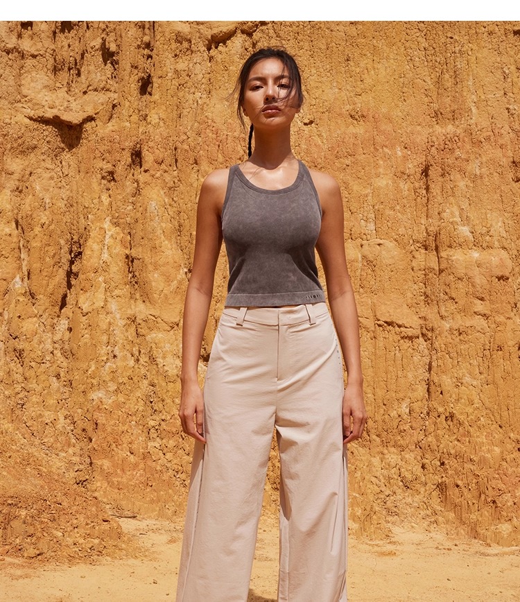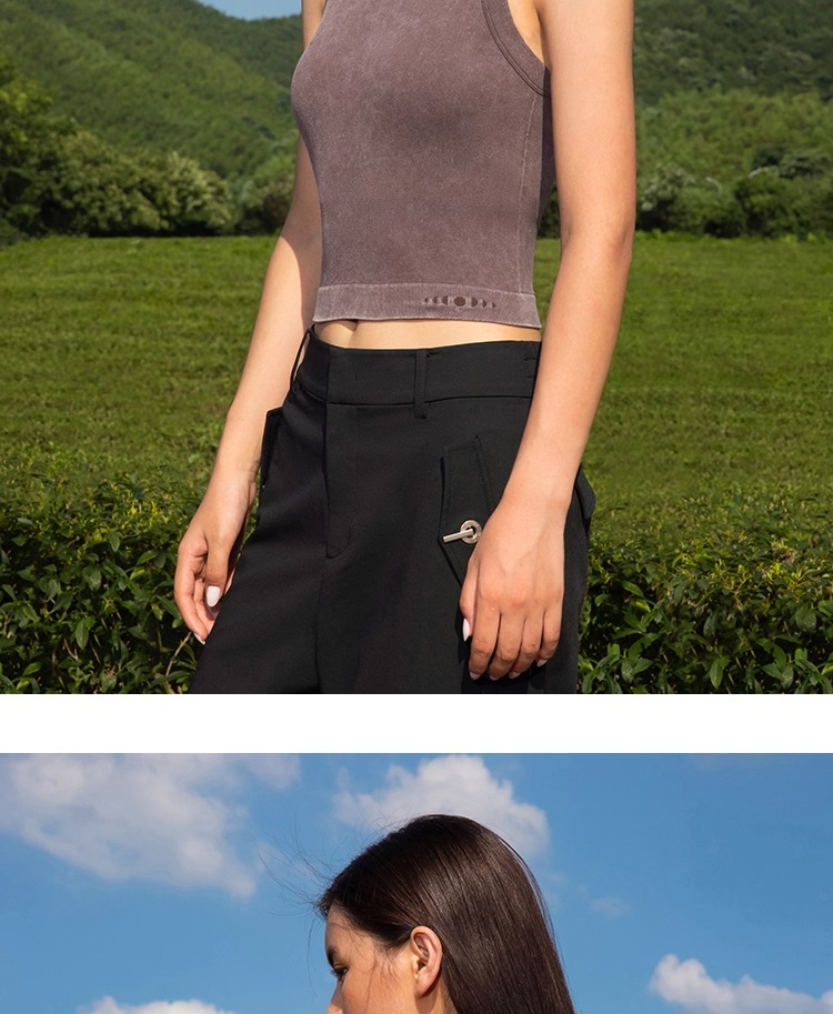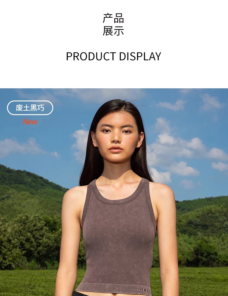 粒子狂热 女士运动内衣 运动内衣中强固定杯 一体织外穿瑜伽健身背心 BR102-855 水洗黑巧棕 罗纹肌理 背心款式 内衣外穿