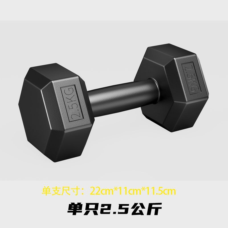 六角哑铃 单只2.5KG 炫酷黑 男士家用健身器材 运动黑色包胶小哑铃 环保材质 可做俯卧撑 男女通用