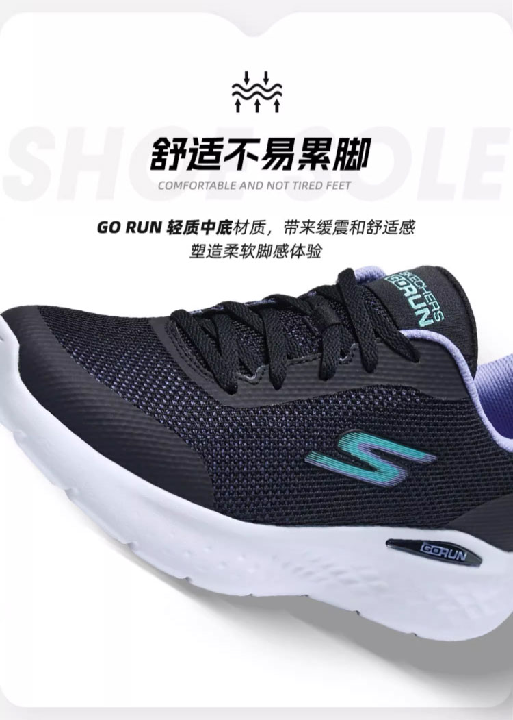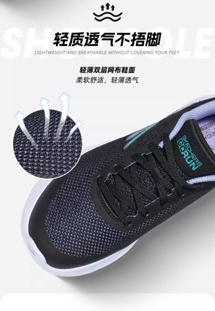 斯凯奇 女 跑步鞋 129441-BKLV 网面休闲鞋 减震跑步鞋 透气妈妈鞋 轻便软底运动鞋