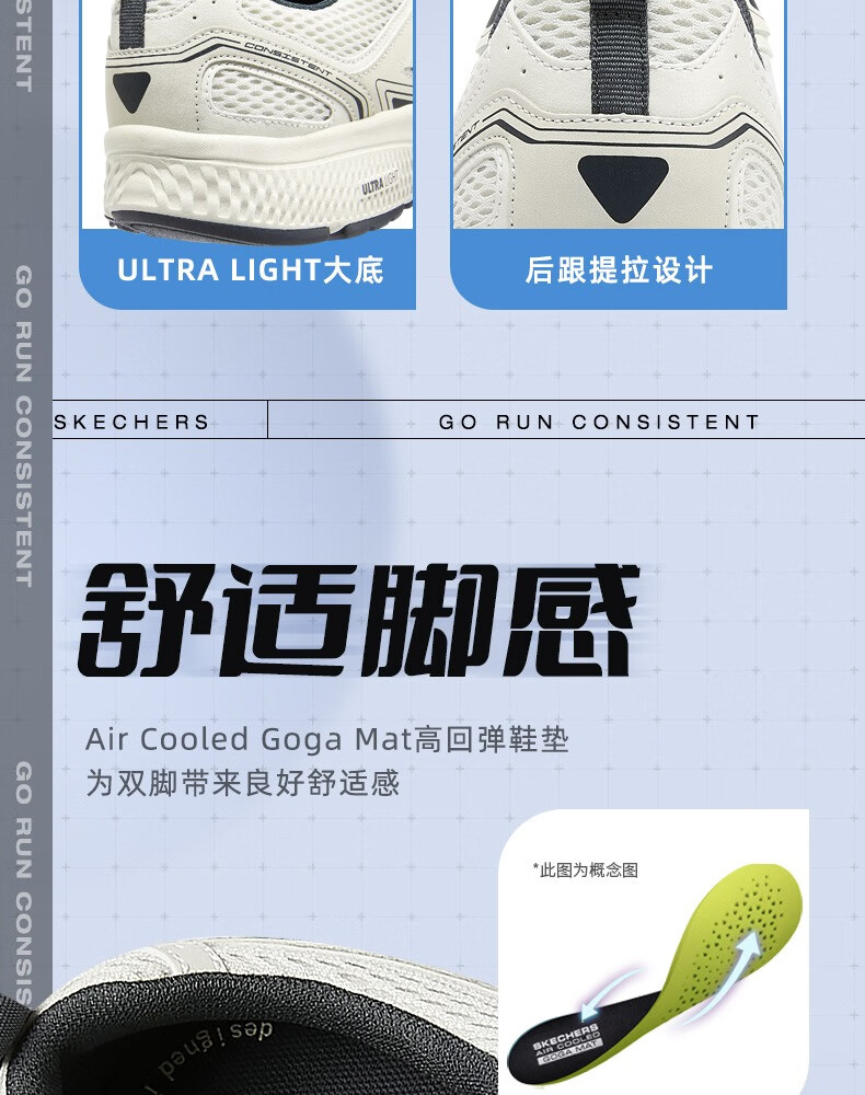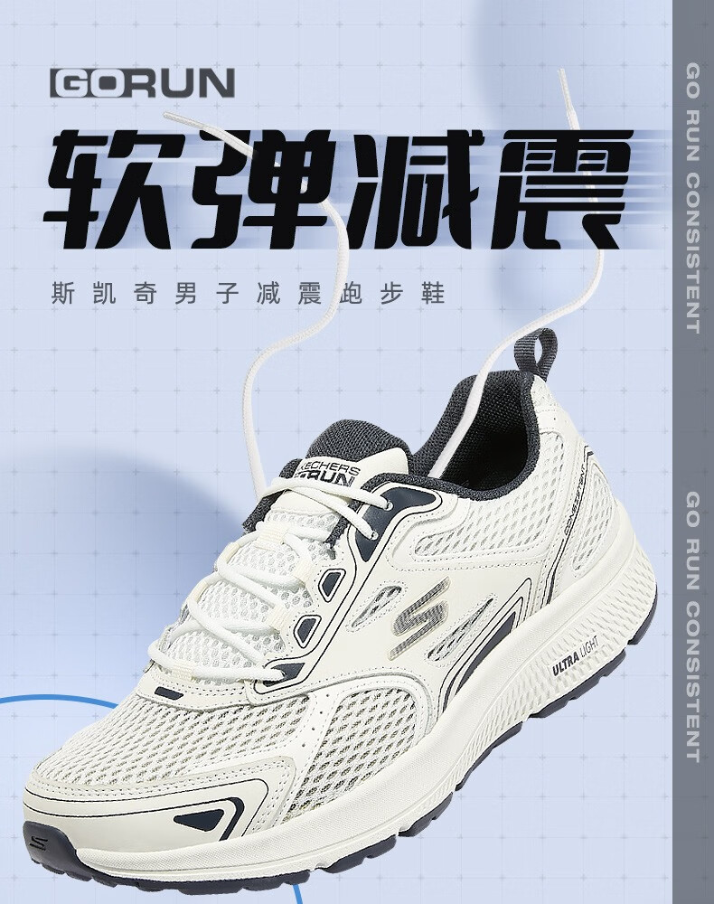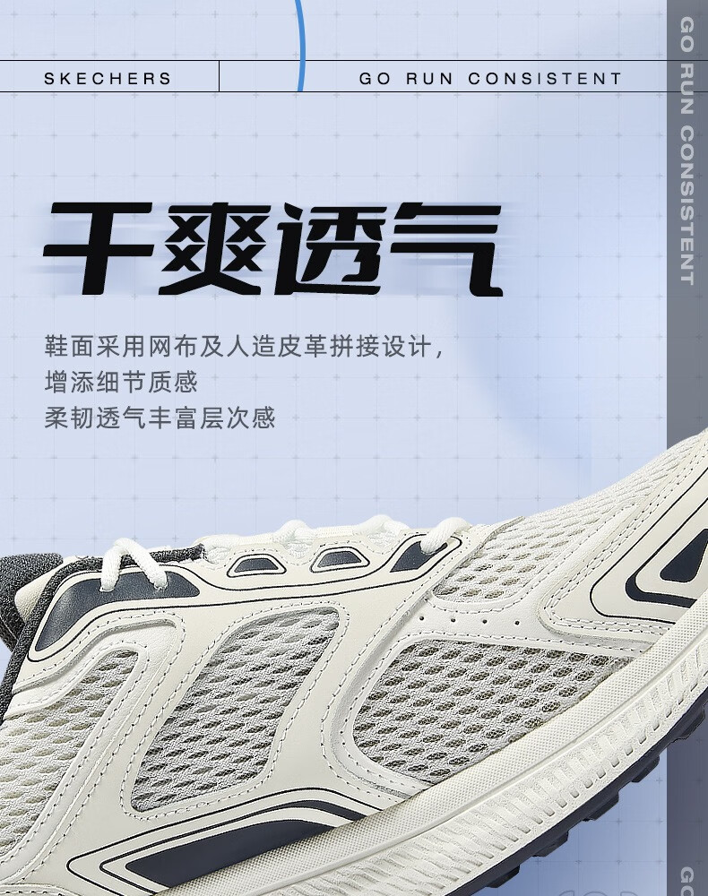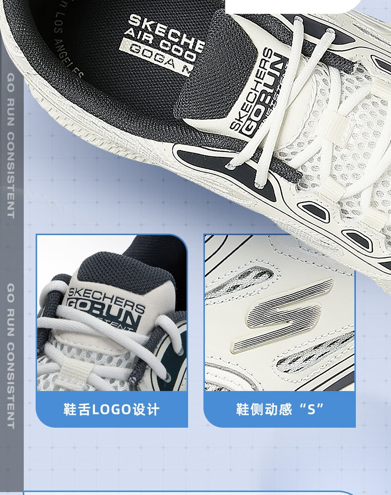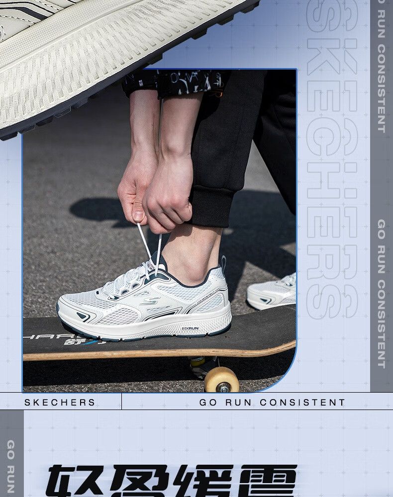 斯凯奇 男 跑步鞋 220036-WNV 男鞋夏季2025新款白色透气缓震软底跑步轻便舒适运动鞋网面休闲鞋 橡胶材质 高回弹鞋垫