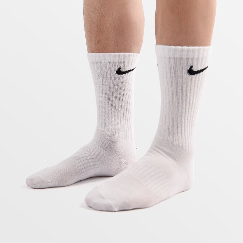 耐克 袜子 中袜 SX7676-100 男袜女袜夏季新款三双装中长袜 休闲篮球运动袜 透气中筒袜袜子 舒适透气 时尚百搭 螺纹袜口