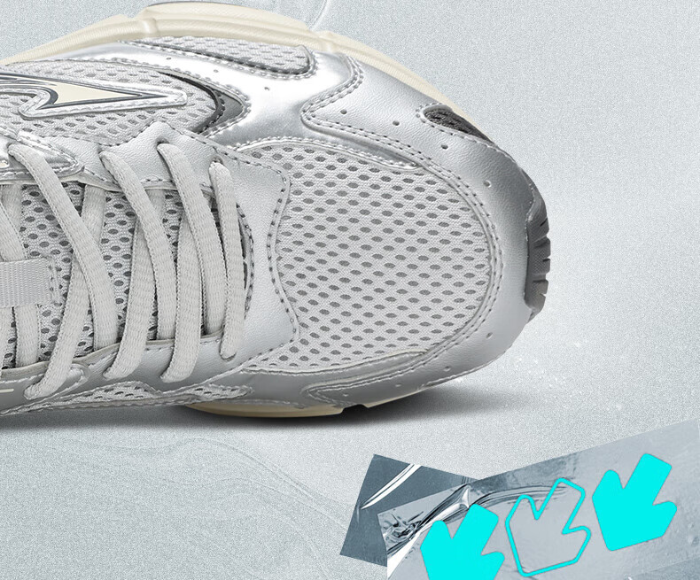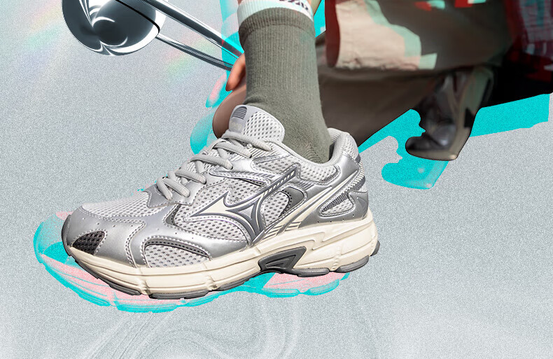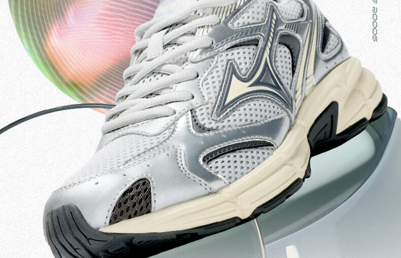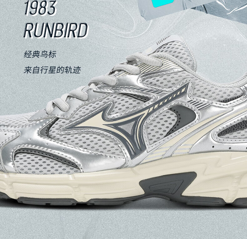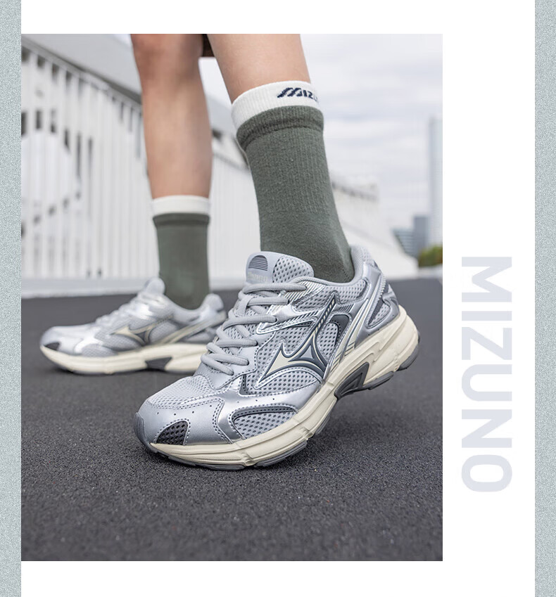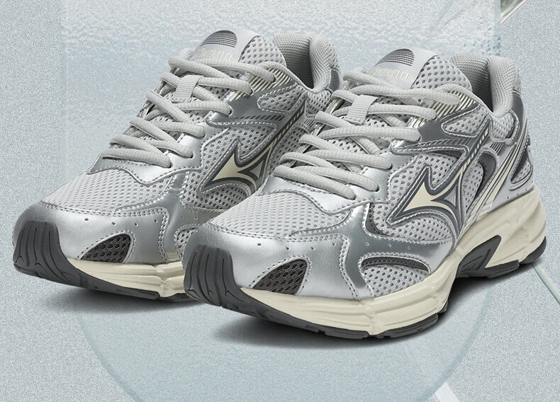 美津浓 跑步鞋 D1GH2229-17 运动鞋女鞋跑步鞋 减震防滑增高休闲鞋 男鞋复古银色老爹鞋 轻质EVA中底 软弹缓震 脚感舒适