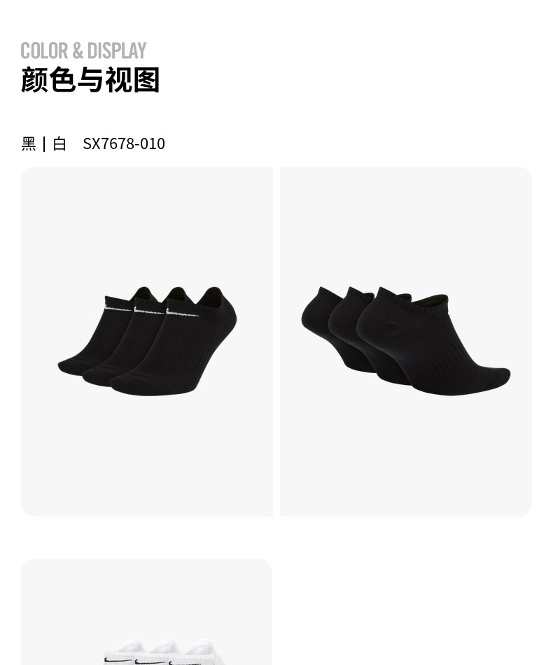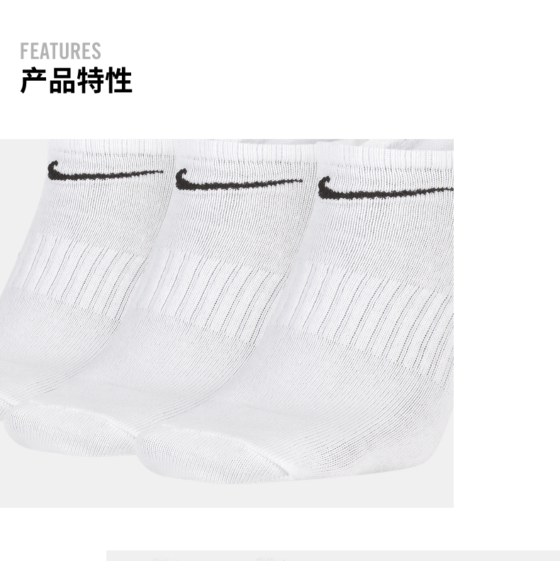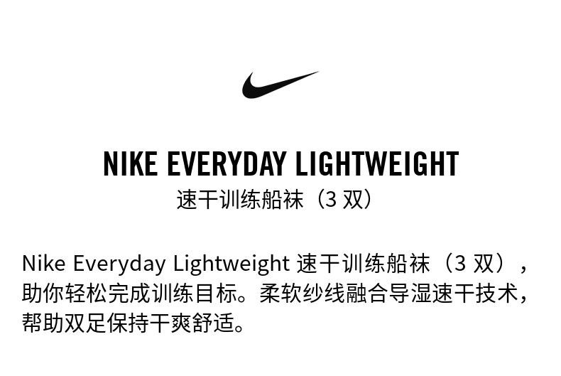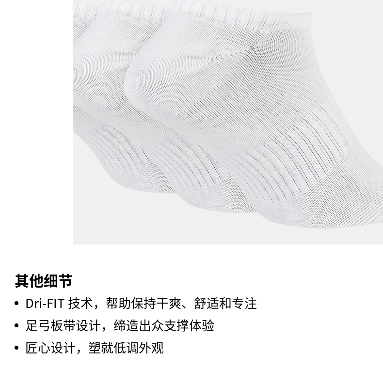 NIKE耐克 速干训练船袜 男女低帮袜 跑步袜 白色运动袜 休闲训练短袜 SX7678-100 白/黑 3双装