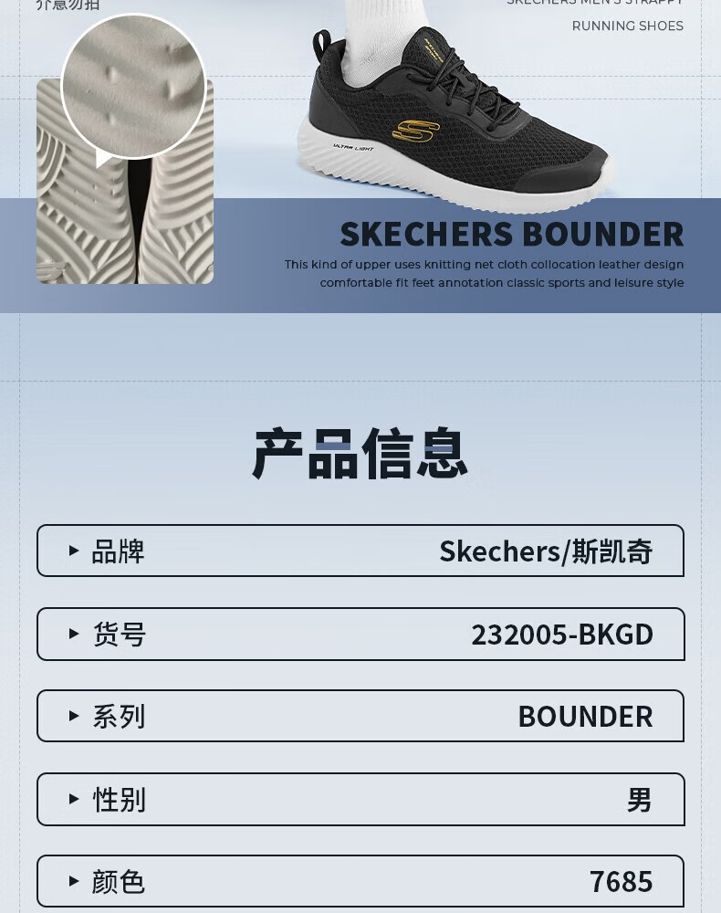 斯凯奇 男 跑步鞋 232005-BKGD 男鞋轻便运动鞋 软底网面鞋 减震休闲跑步鞋男