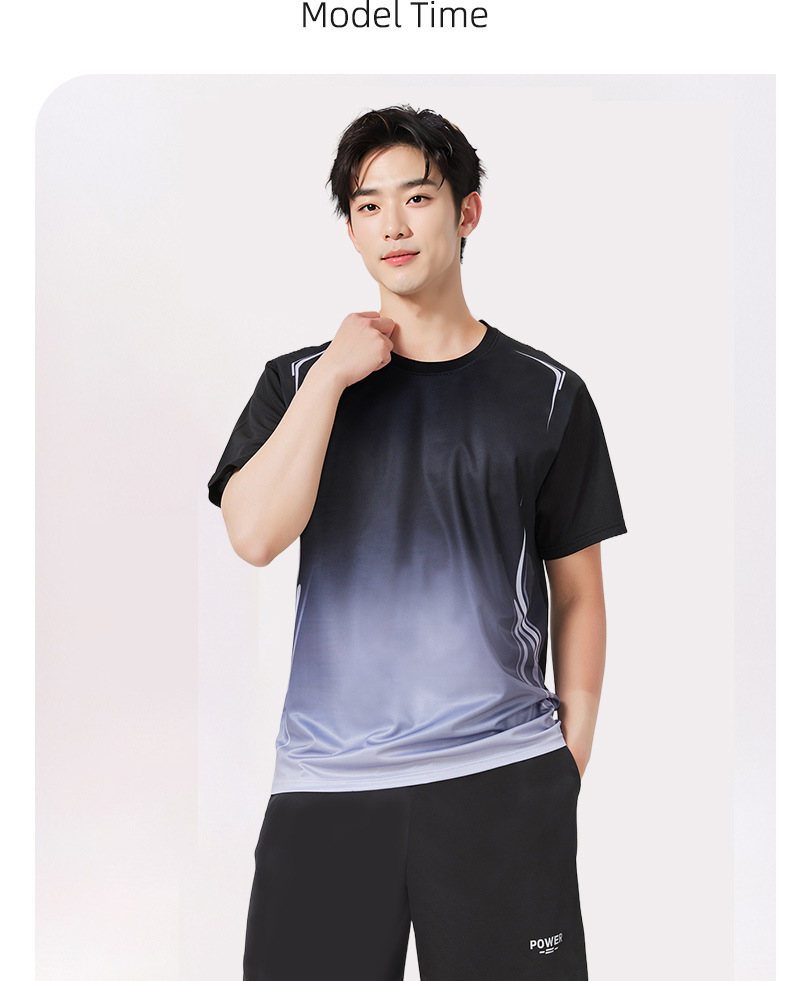 玛尔斯 男女同款冰丝渐变色跑步套装 D372 黑色 运动速干吸汗透气健身短袖T恤短裤