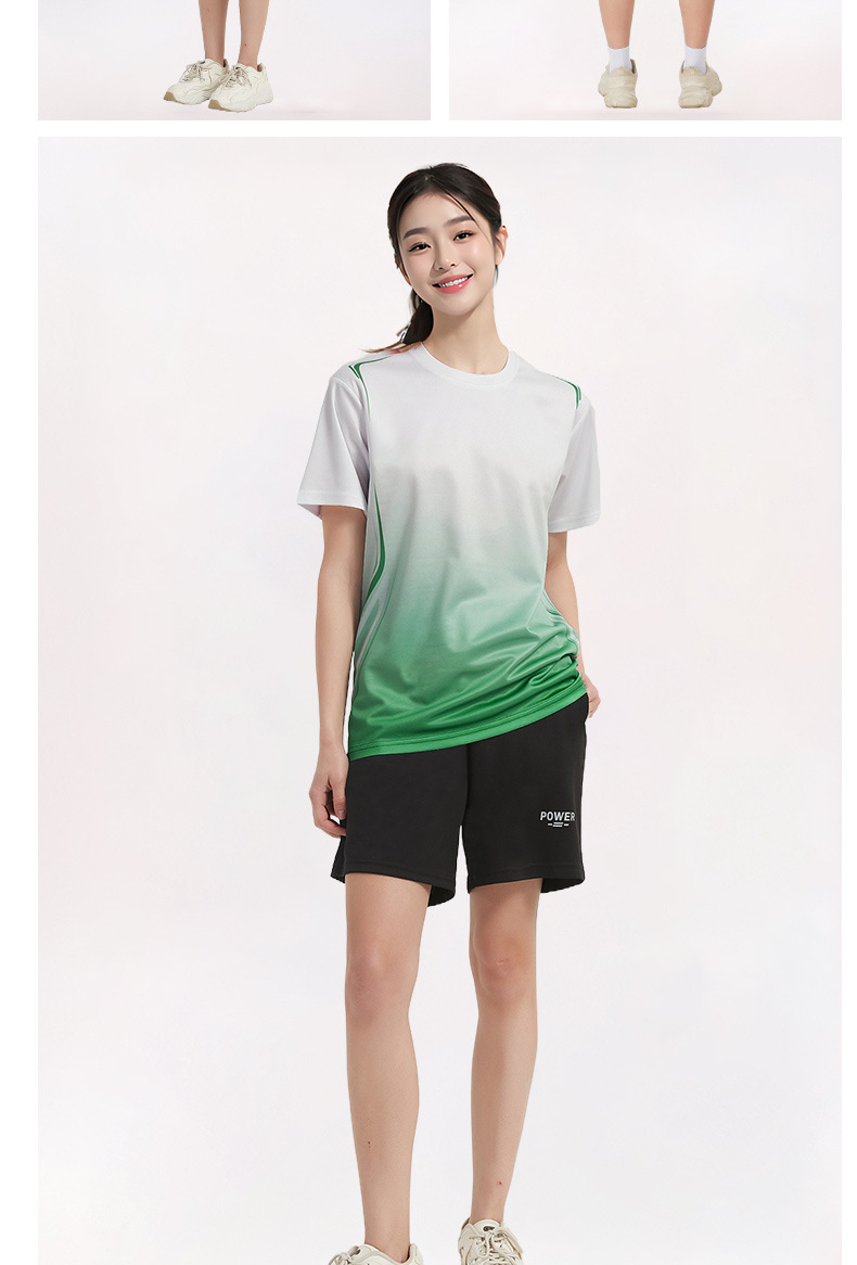 玛尔斯 男女同款冰丝渐变色跑步套装 D372 绿色 运动速干吸汗透气健身短袖T恤短裤