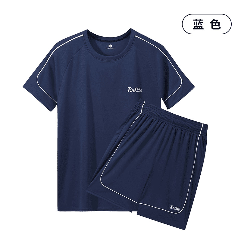 玛尔斯 男女同款款运动速干套装 2403 宝蓝色 宽松运动服短袖短裤 大码跑步运动套装情侣