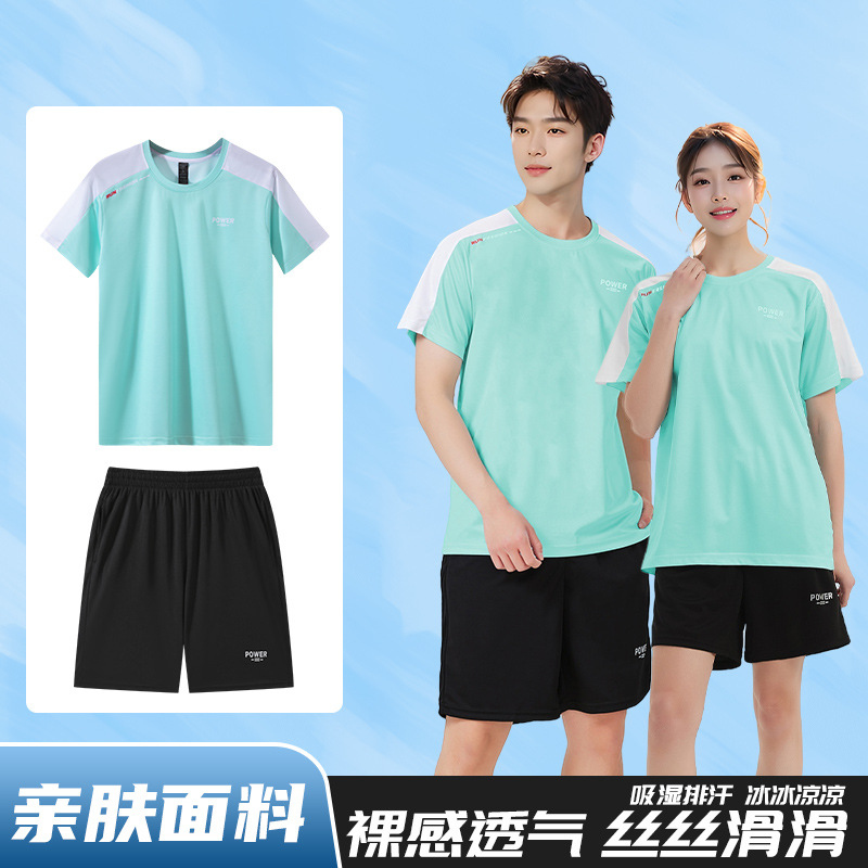 玛尔斯 运动套装跑步服 男女同款 8808 浅绿色 男女健身衣服 骑行训练晨跑服 春夏冰丝速干T恤 吸湿速干 舒适领口 网孔面料