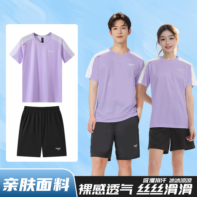 玛尔斯 运动套装跑步服 男女同款 8808 紫色 男女健身衣服 骑行训练晨跑服 春夏冰丝速干T恤 吸湿速干 舒适领口 网孔面料