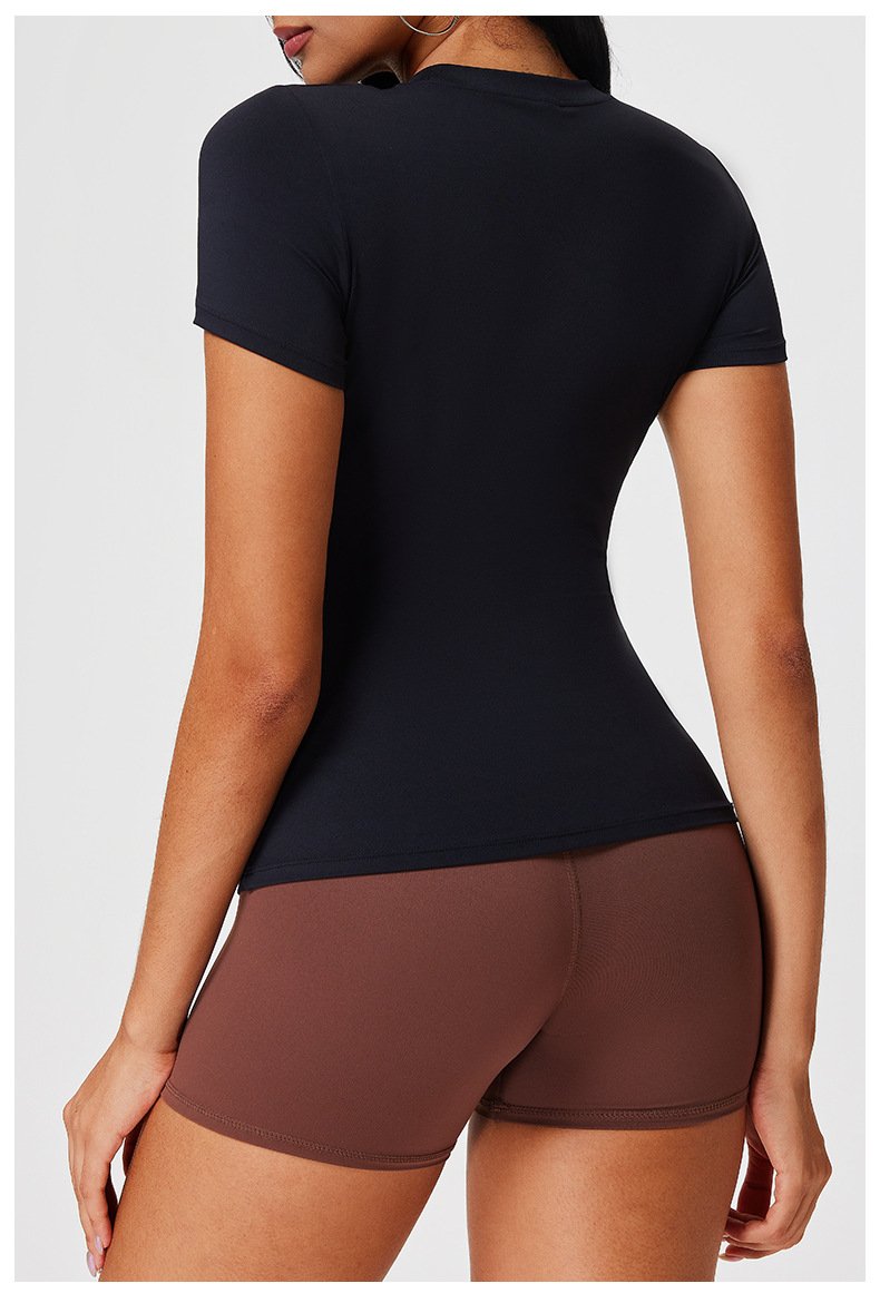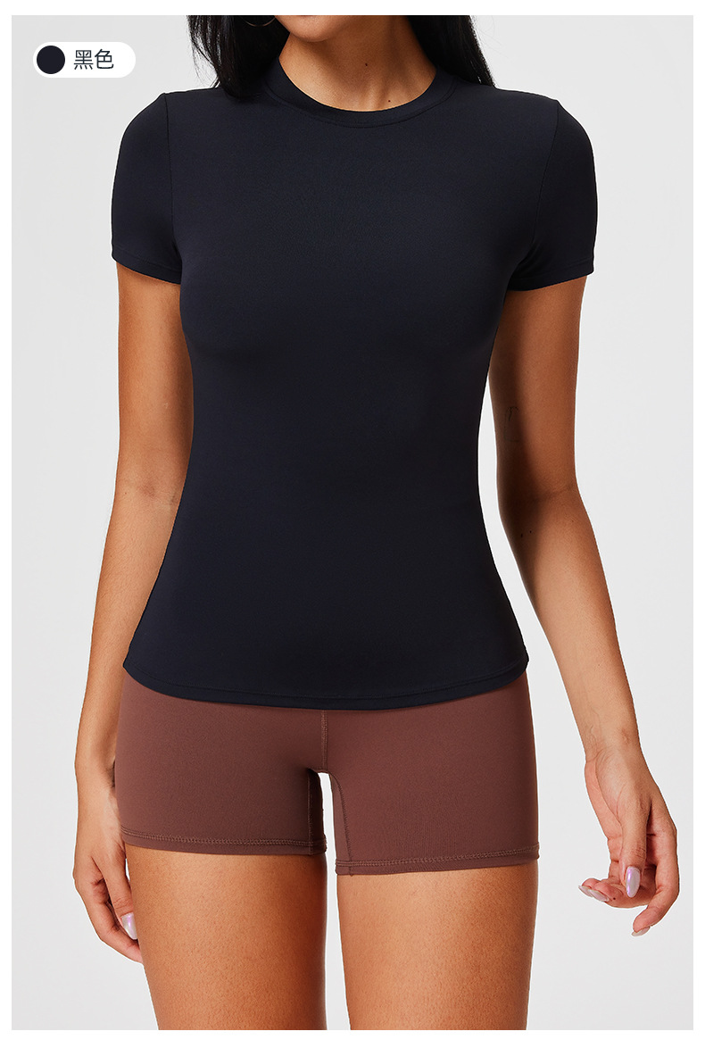 范斯蒂克 女款纯色t恤 FBF2506701 黑色 短袖女夏修身健身服 运动裸感正肩跑步瑜伽服上衣 轻盈有弹力 轻压塑身 勾勒腰线