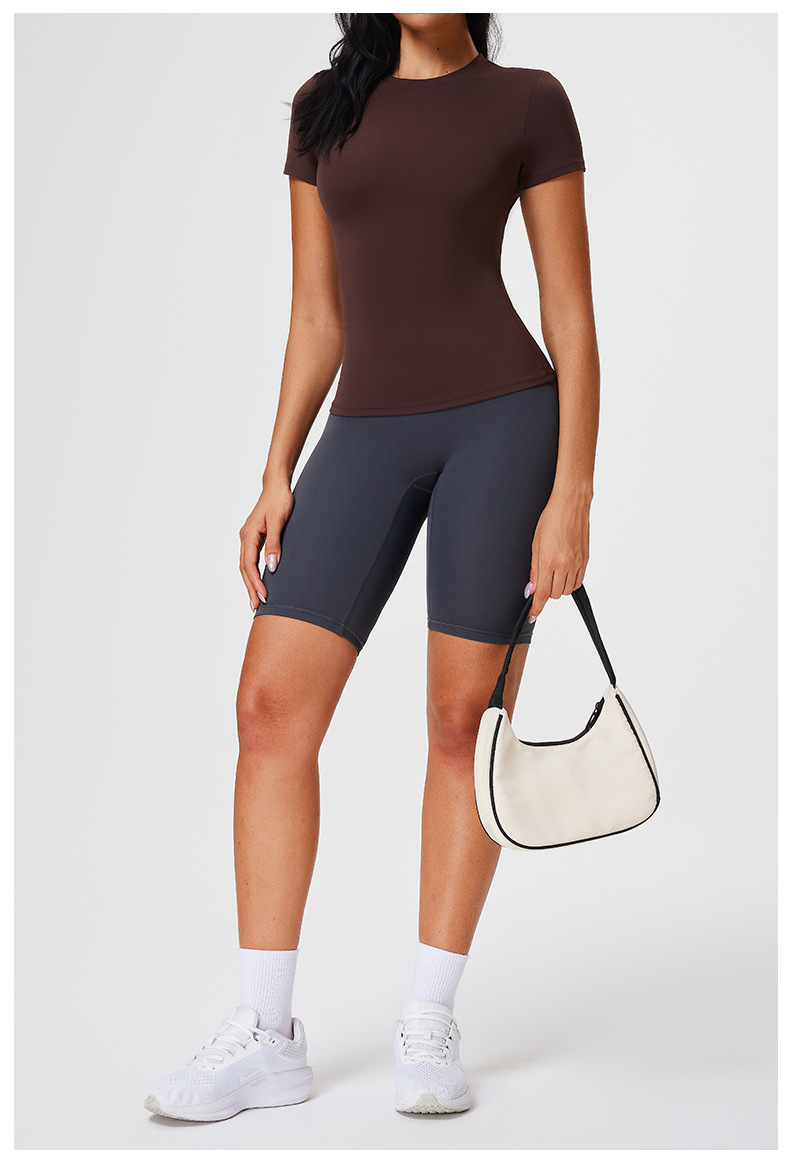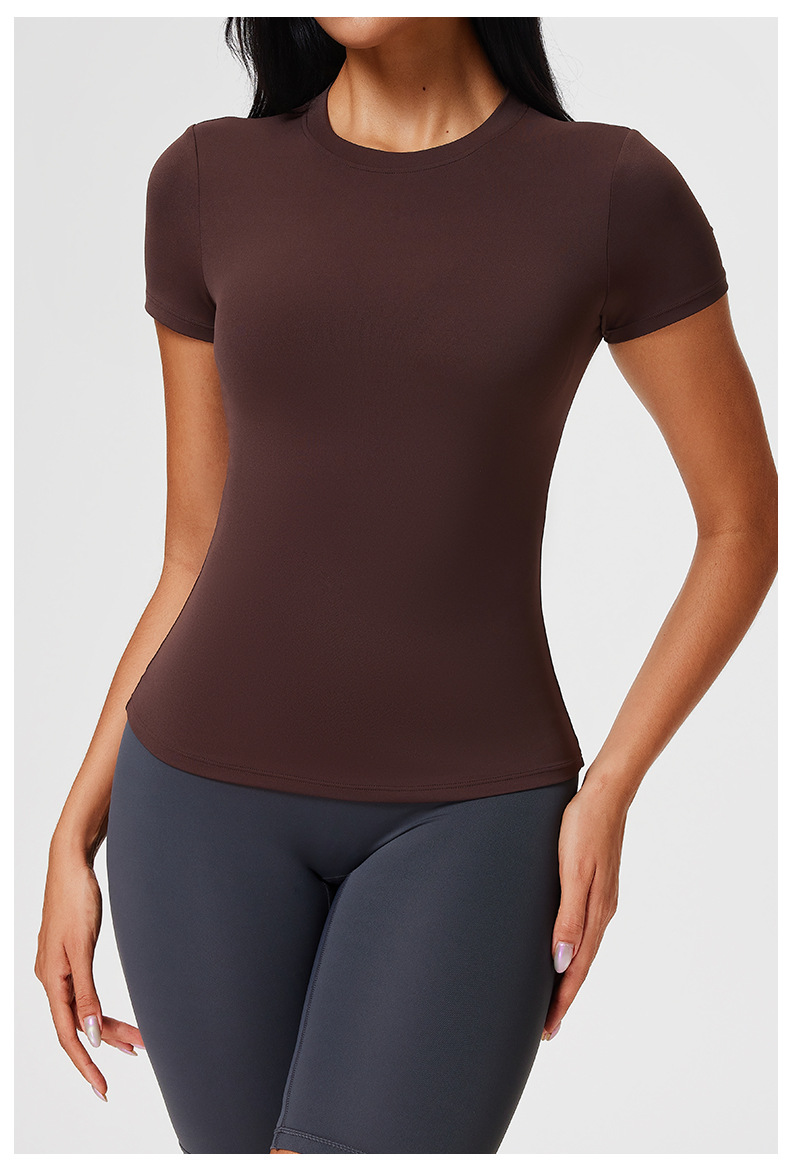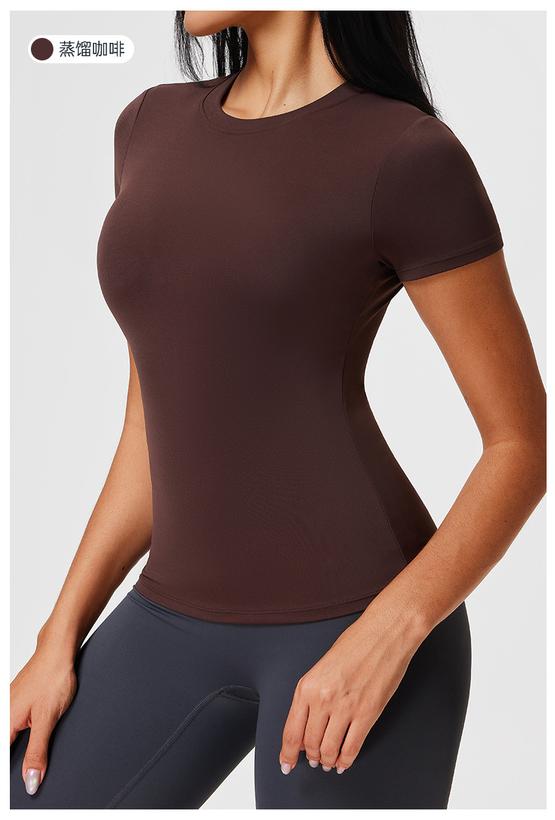 范斯蒂克 女款纯色t恤 FBF2506701 蒸馏咖啡 短袖女夏修身健身服 运动裸感正肩跑步瑜伽服上衣 轻盈有弹力 轻压塑身 勾勒腰线