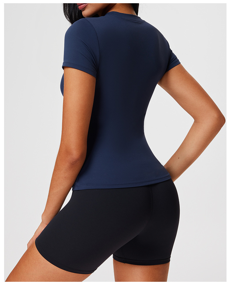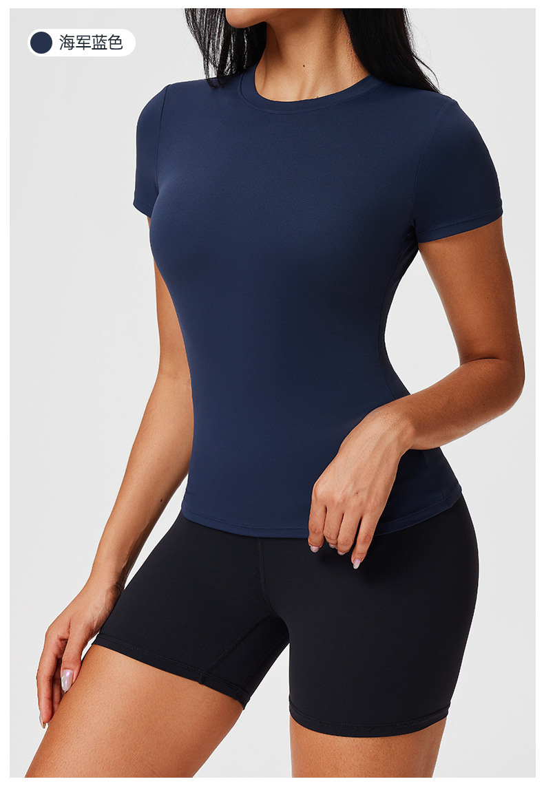 范斯蒂克 女款纯色t恤 FBF2506701 海军蓝 短袖女夏修身健身服 运动裸感正肩跑步瑜伽服上衣 轻盈有弹力 轻压塑身 勾勒腰线